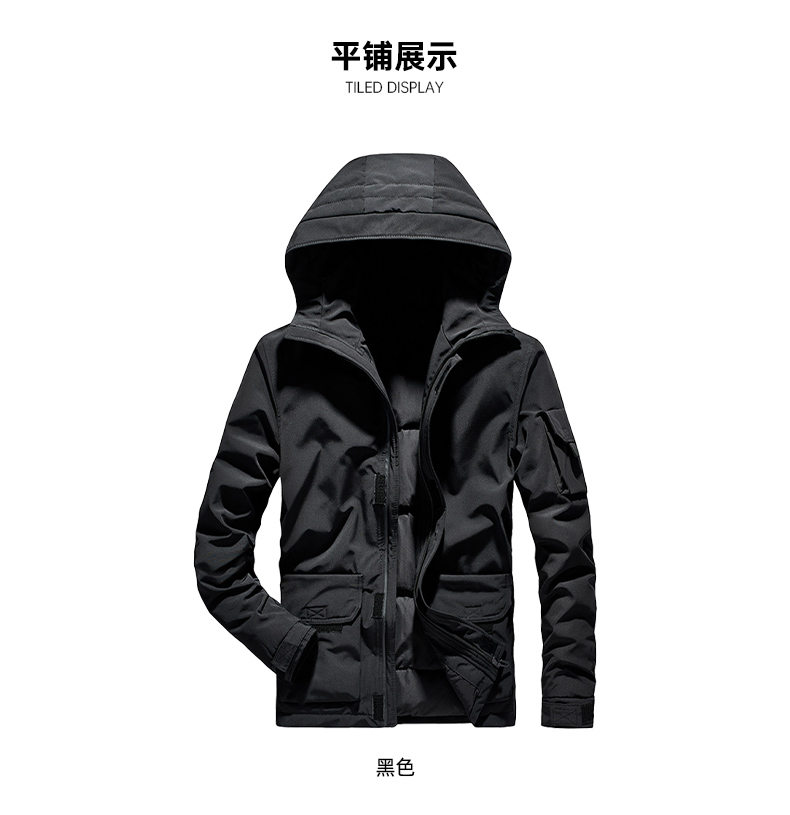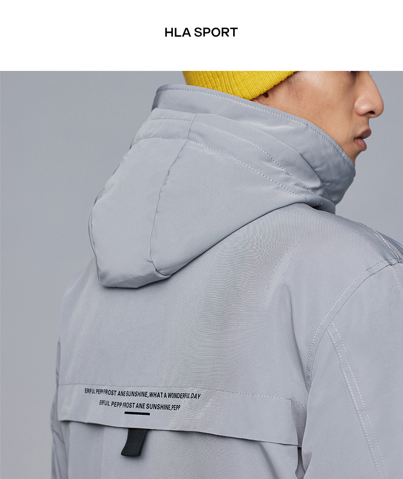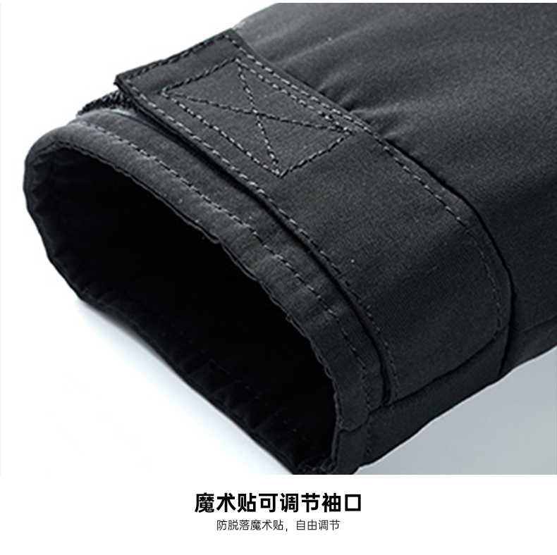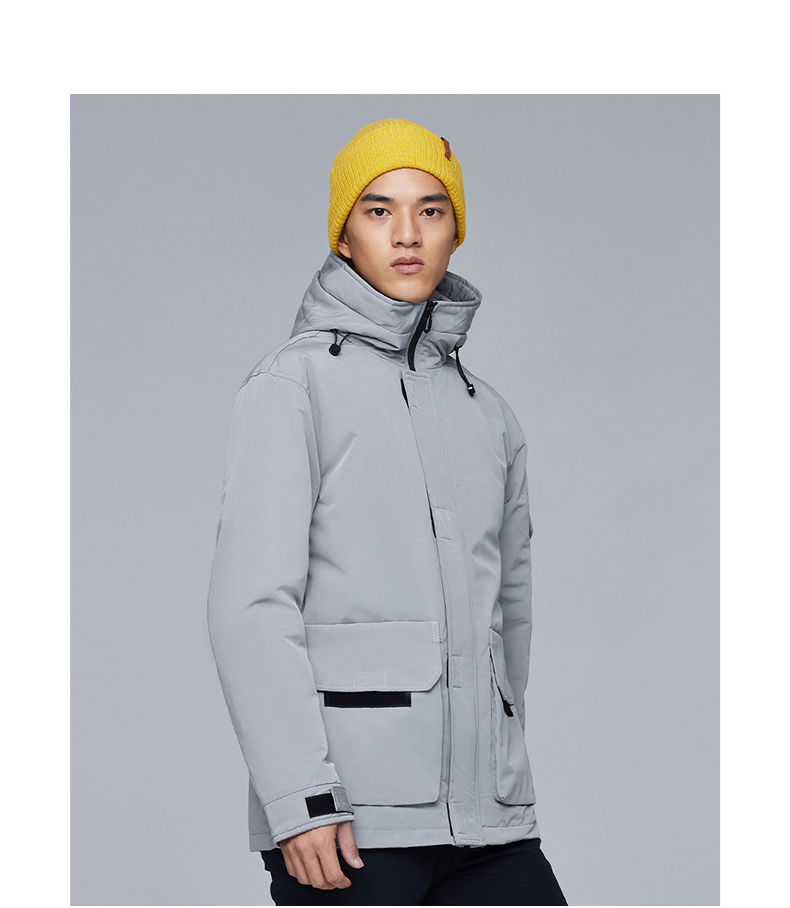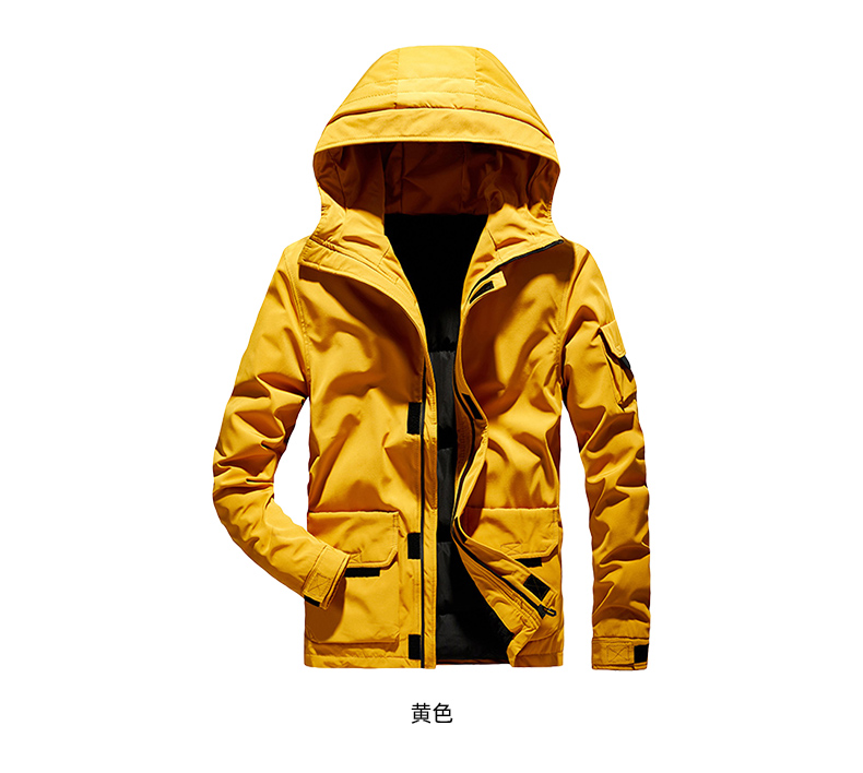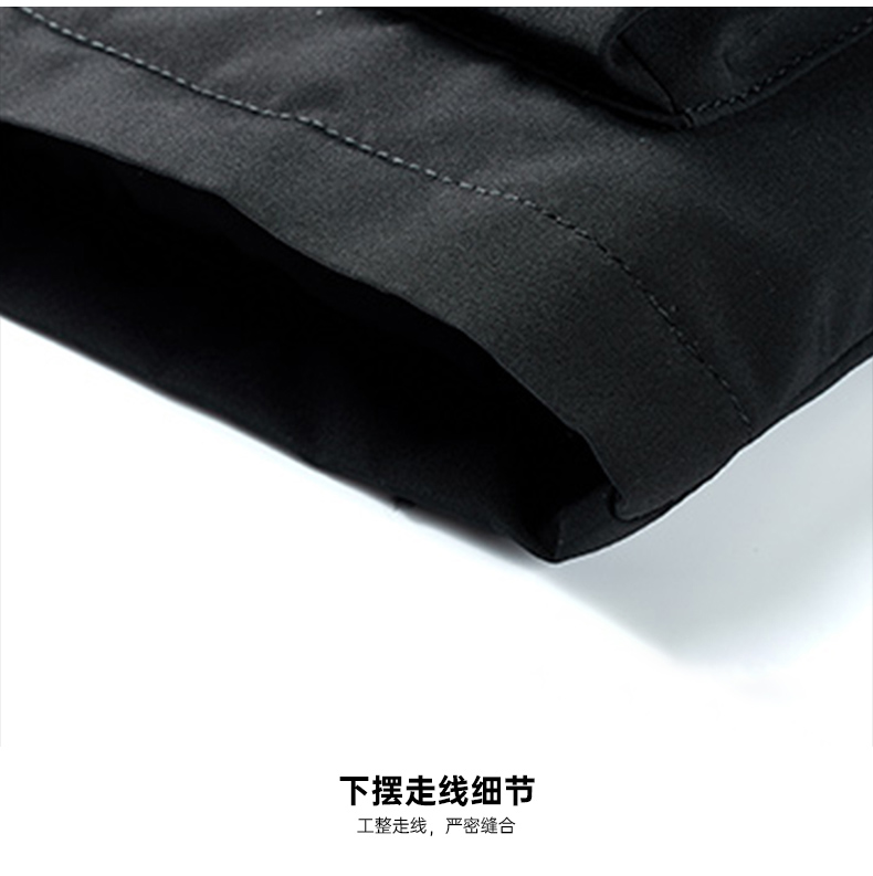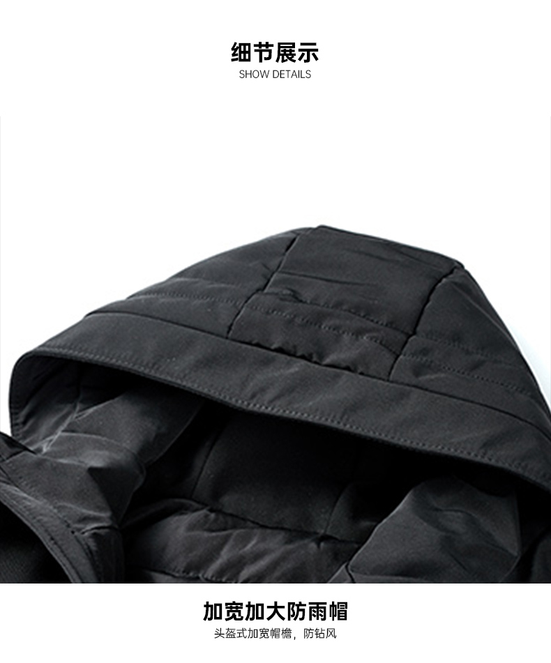 在款式和细节上,一体连帽设计,加宽加大的头盔式防雨帽,搭配半高领,能很好的防钻风。拉链+挡风的双重门襟,皮瓣口袋,可调节魔术贴袖口。