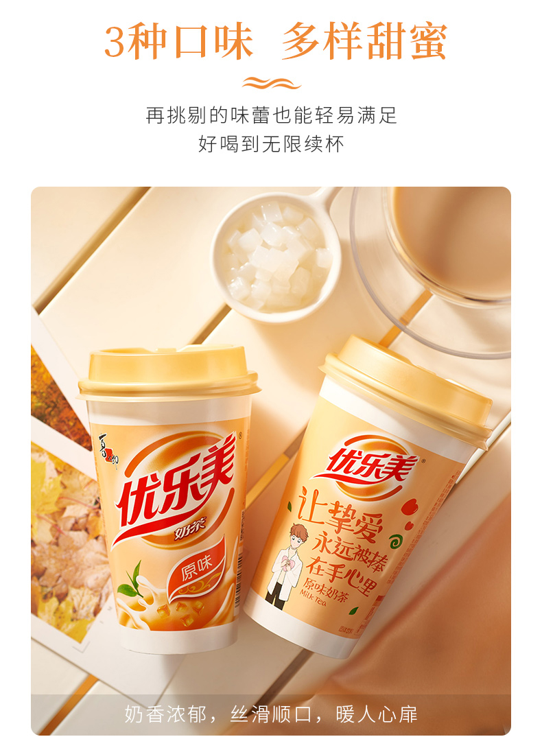 优乐美椰果奶茶3种口味可选,多样甜蜜,奶香浓郁,丝滑顺口,不含反式脂肪酸,好喝无负担,周杰伦推荐,畅销十年,日期新鲜