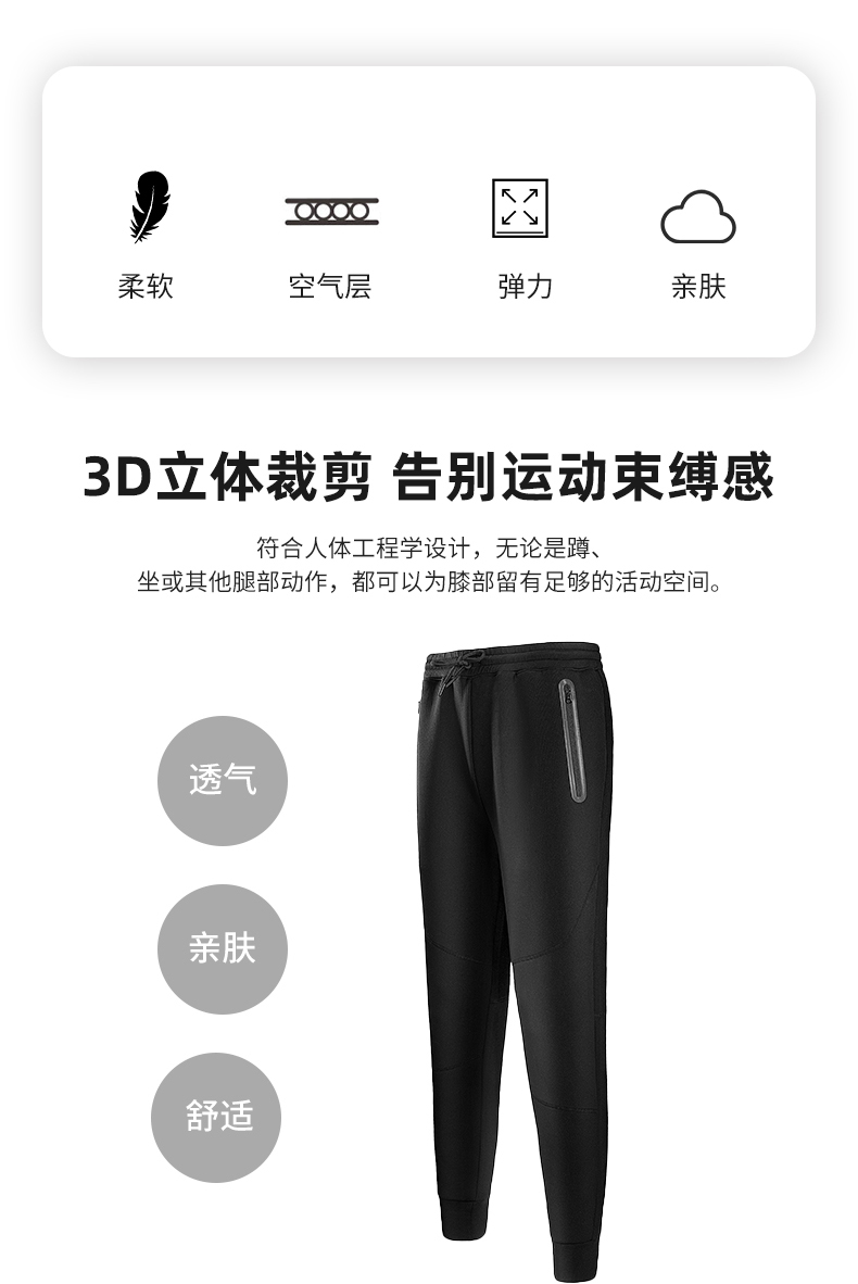 在款式上,经典运动版型,能很好的修饰腿型,可以拉长视觉效果,显瘦显长。3D立体剪裁,符合人体工程学设计,无论是蹲、坐或其他腿部活动,都可以为膝部留有足够的活动空间,上身活动自如。