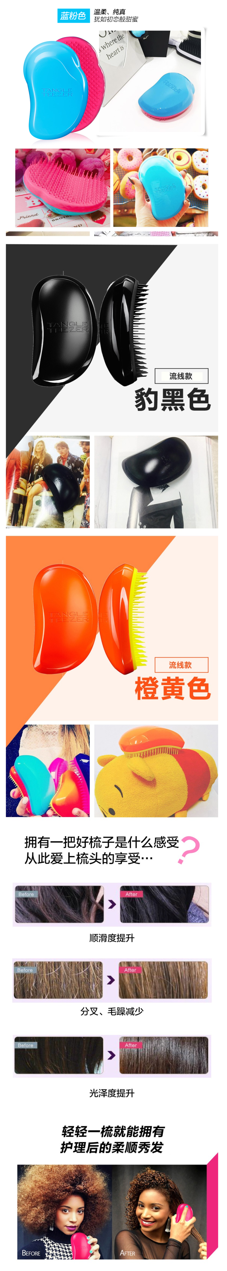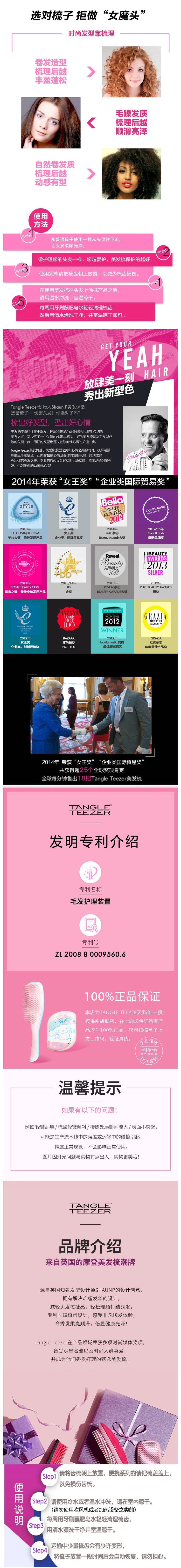 Tangle Teezer美发梳是来自英国的专业美发梳,其设计理念源于英国时尚美发界知名发型师Shaun P,是专为解决纠缠打结的新一代专业护发产品,就连凯特王妃也是TT美发梳的忠实使用者。
