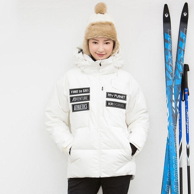 这款羽绒服是地球科学家的旗舰款,为冬季滑雪设计,滑雪服都需要防水,所以外层是防水的冲锋衣面料,M码充绒量高达219克,超级厚实保暖。有雪花白、中灰、粉红三种颜色,小编觉得白色最好看。