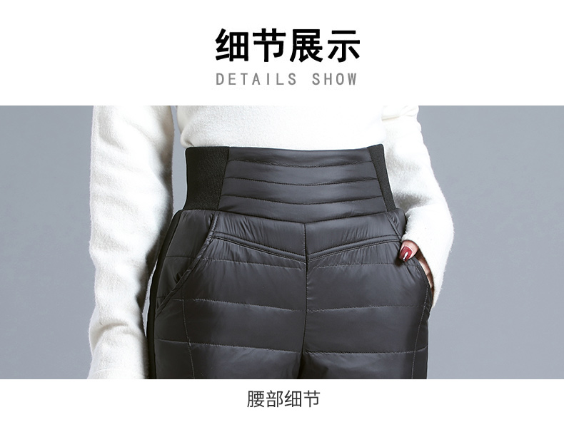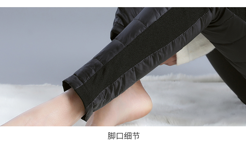 大身采用高密度尼丝纺面料,面料细腻顺滑,耐磨抗皱,防风防泼水;裤身侧边采用高弹加厚绒布,穿着不紧绷、收放自如,高腰收腹设计,增加保暖和穿着舒适性,时尚百搭保暖又好穿。