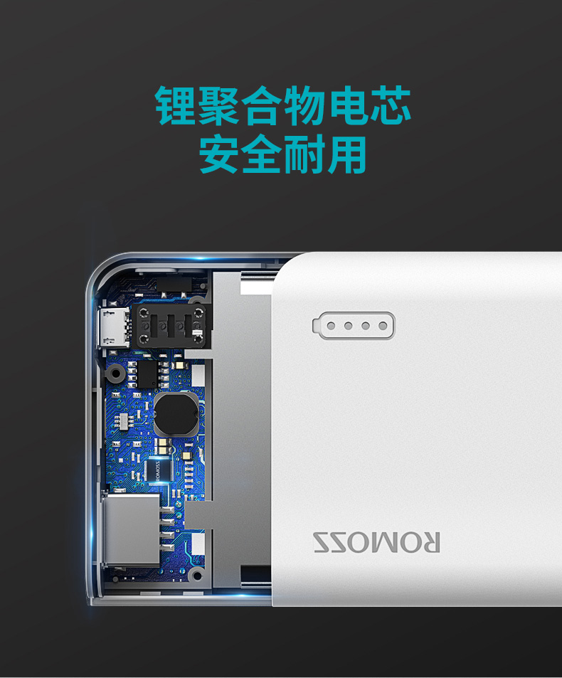 创新3蓄电口设计,无需另外带充电线,安卓、苹果的充电线都能直接给充电宝充电,使用很省心,自带双USB输出口,可同时给2个电子设备充电,表面采用蚀纹工艺,经过喷砂处理,防汗防指纹,握持手感好。