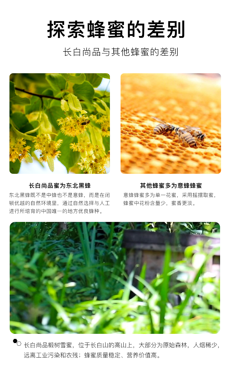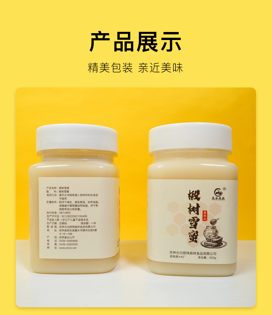 椴树广泛分布于长白山山脉,是长白山最重要的、最优质的野生蜜源植物。椴树蜜呈浅琥珀色或乳白色粘稠液体,低温条件下呈乳白色凝脂状或白色结晶,有油脂样光泽,具有浓郁的椴树蜜特有香味,味道甜润适口,营养价值高,易被肠胃吸收。深受欧洲人喜爱,是难得的森林蜜种。