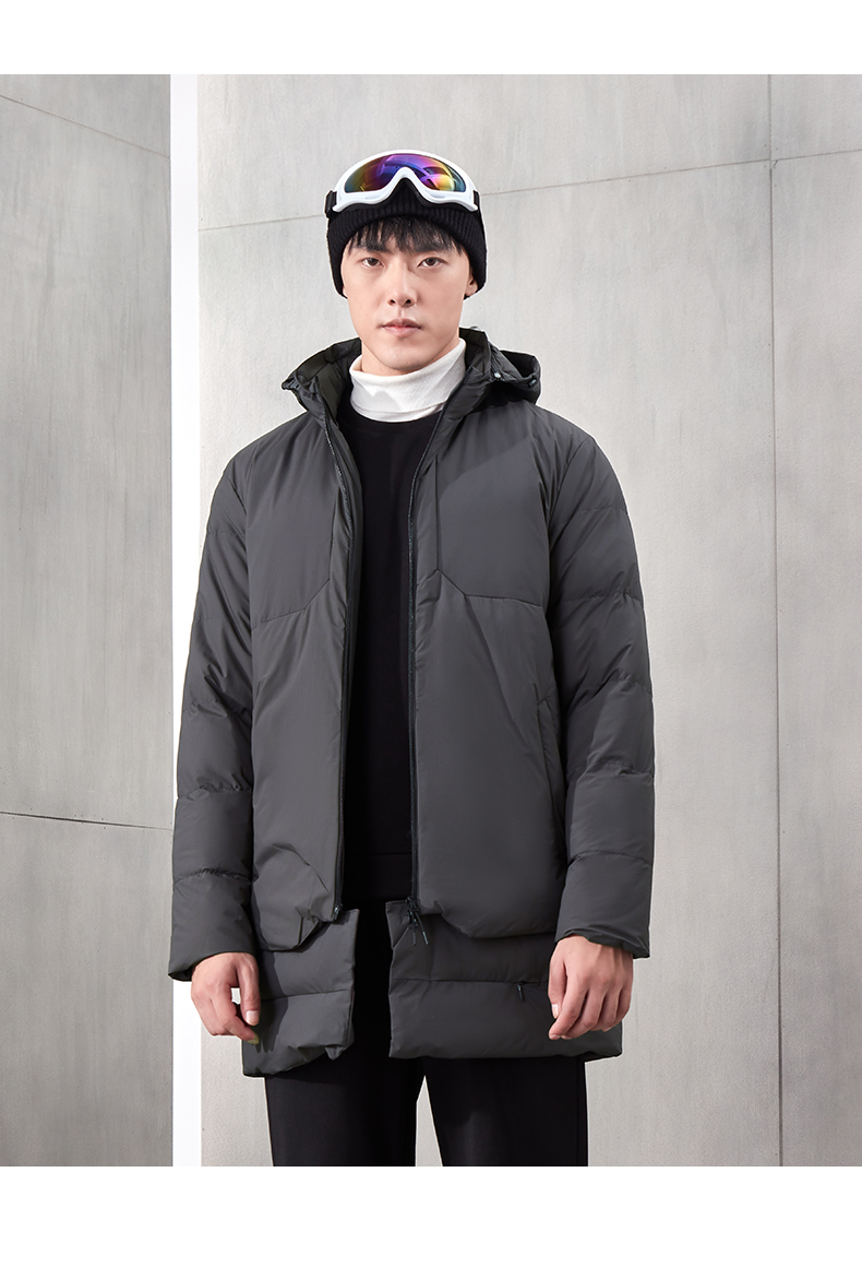 在款式上,中长款/可拆卸成短款穿,挺使用的。连帽设计,弹力收缩袖口,两侧插袋有拉链。