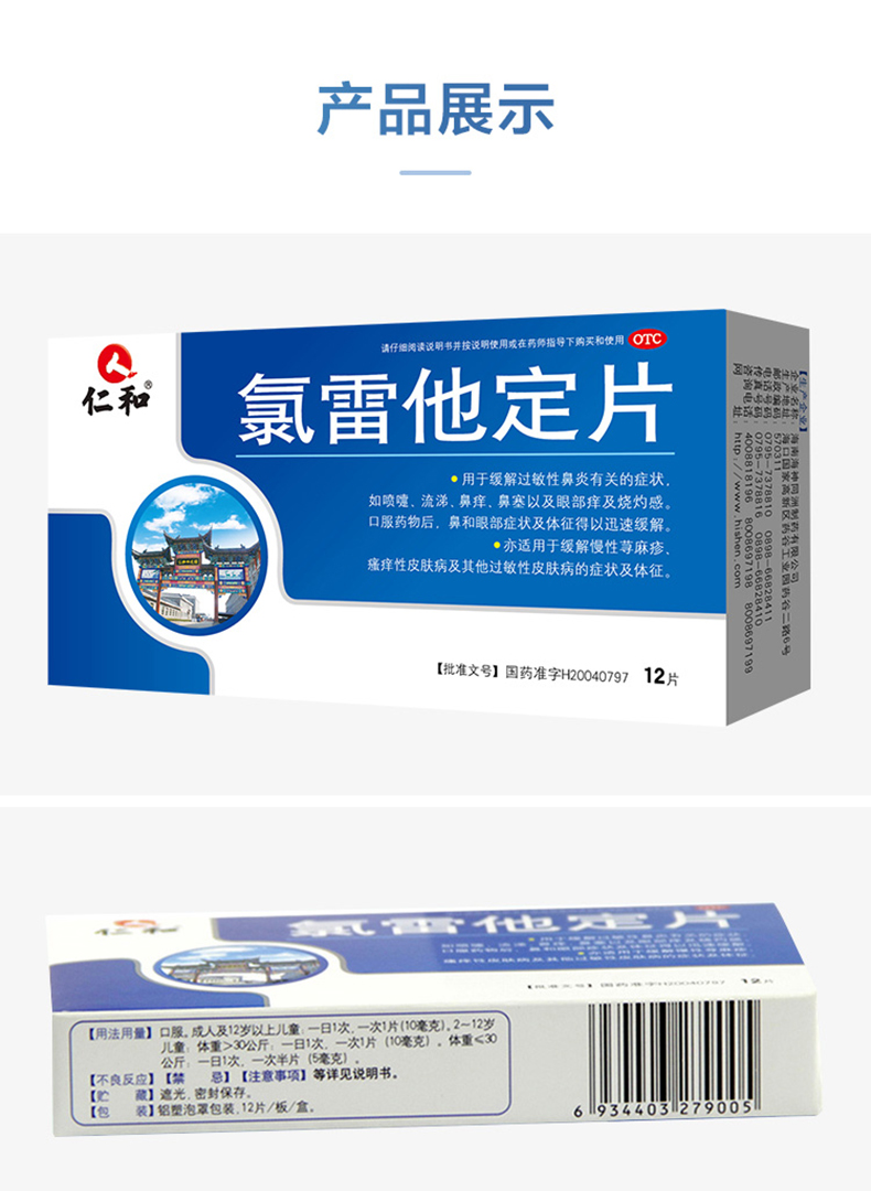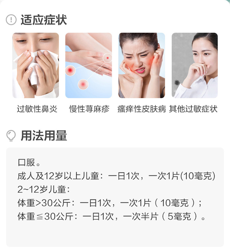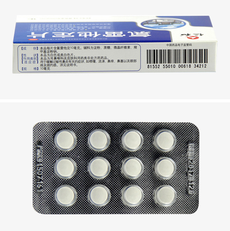 这款任何氯雷他定片,为10mg,属于推荐剂量,与常见同类片剂含量相同,小片剂易于吞服。