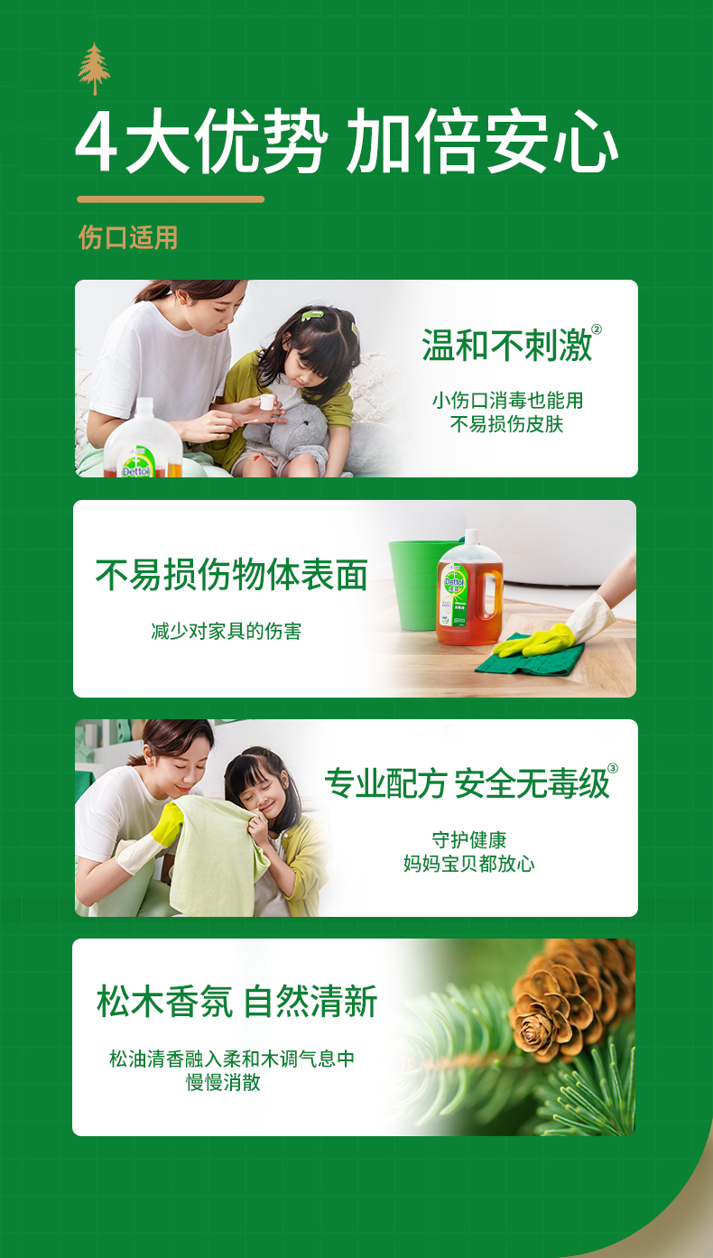 这款滴露 杀菌消毒液,主要有效成分是PCMX,可有效杀灭99.999%的大肠杆菌、金黄色葡萄球菌等有效细菌,含有清香松油,淡淡清香;可兑水用于伤口消毒,也可以用于地板消毒、衣物消毒、家居消毒等。