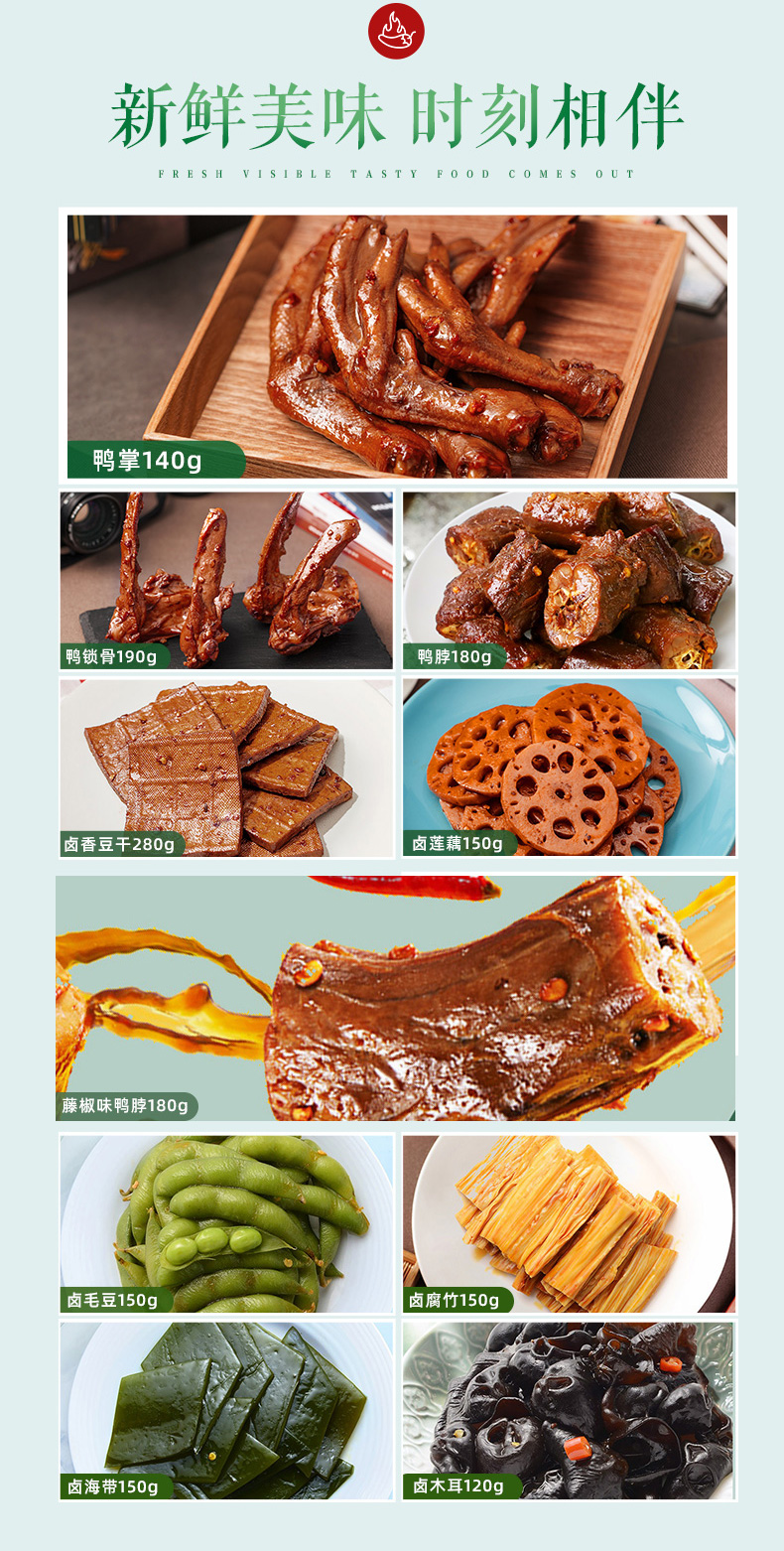周黑鸭是风靡全国的卤味品牌,口碑度超高。他们家的卤制品,颜色略深,口味甜辣,而后越吃越辣、越吃越麻、越吃越香,根本停不下口。锁鲜装口感要比真空包装好不少,氮气保鲜,水分更充足一些,锁鲜味道更好。