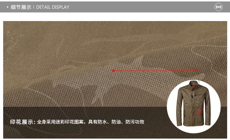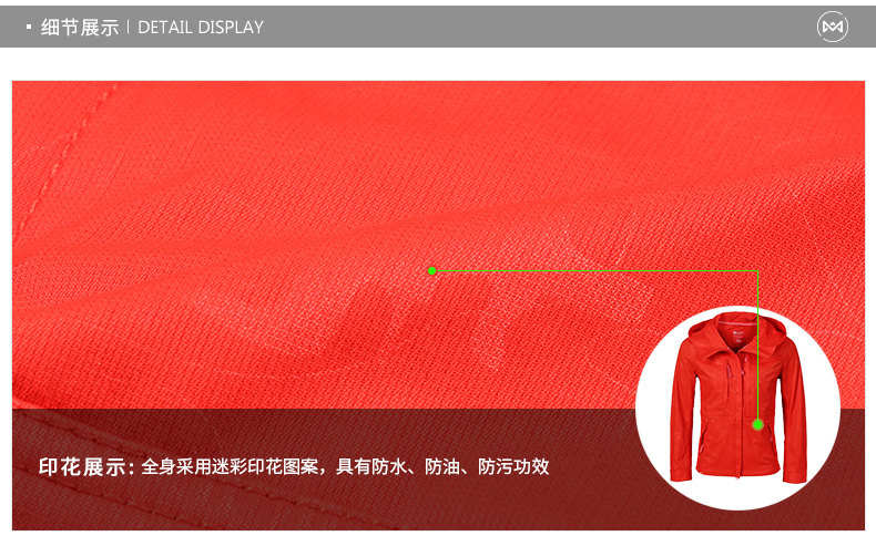 在款式上,女修身/男合身,全身是淡迷彩印花图案,下摆有抽绳设计,可自由调节松紧,两侧口袋有拉链。