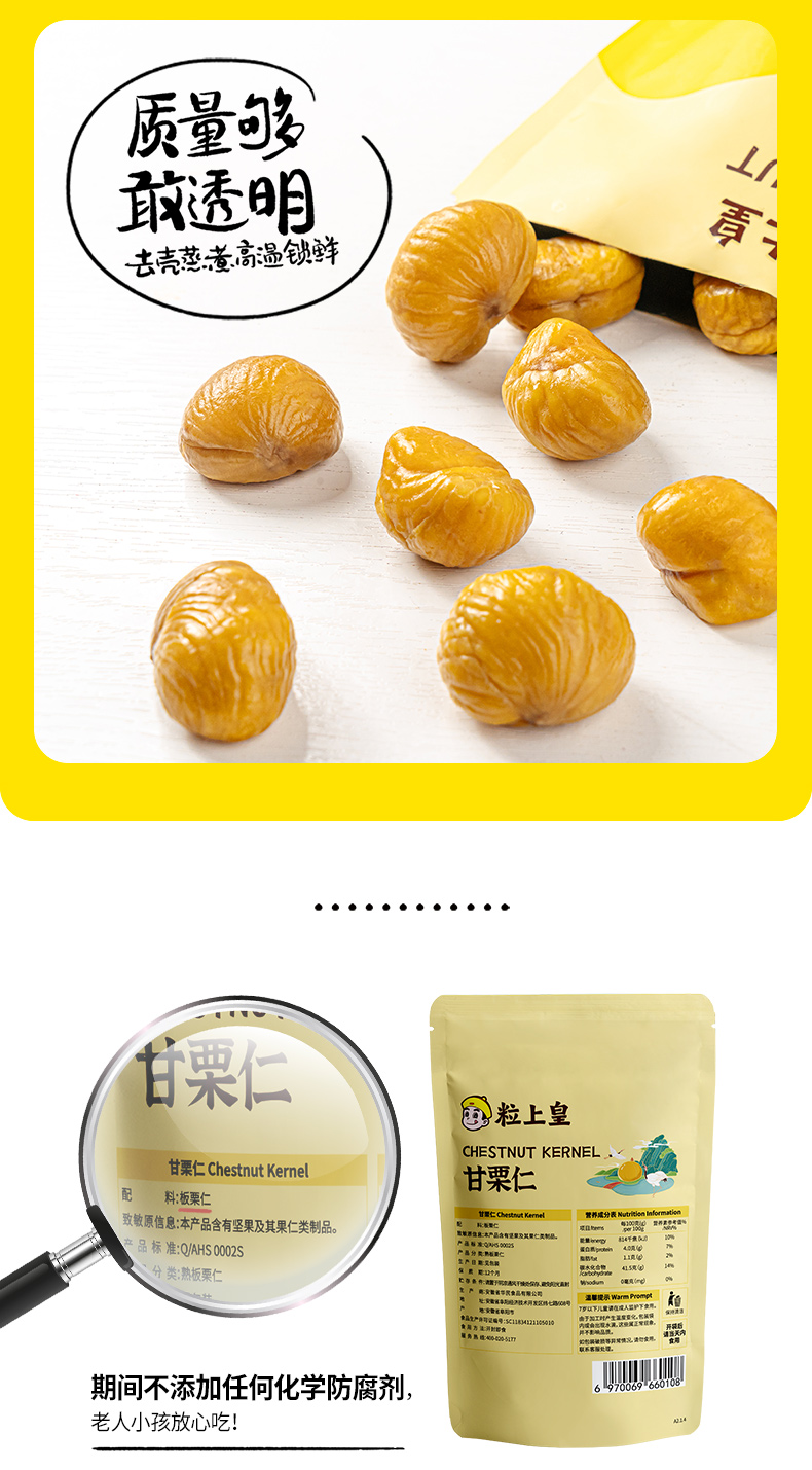 天猫粒上皇旗舰店15.9元,47.7元 减22.8元,可领6元优惠券,拍3件实付18.9元到手,折合6.3元一袋。这款粒上皇板栗仁,香甜软糯,不用剥,一口糯,口感粉糯美妙,天然无添加,颗颗饱满,无坏果,营养味浓,开袋即食。