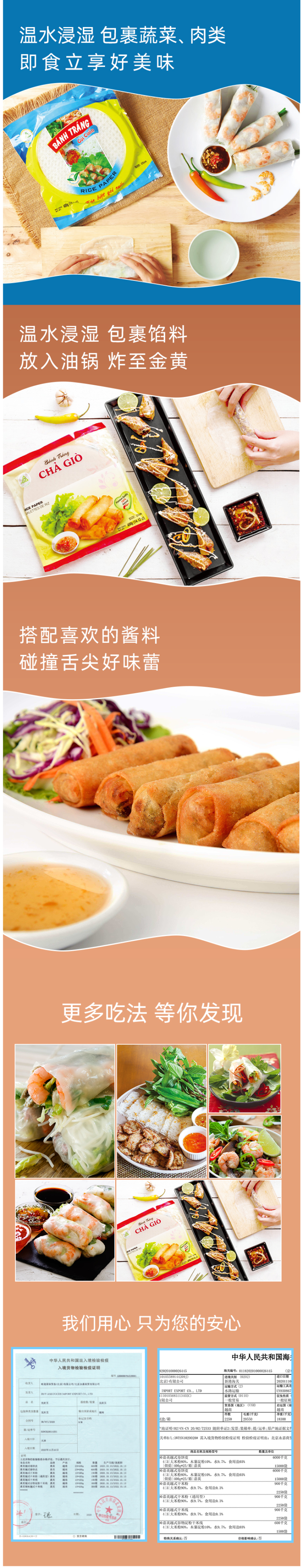 这款嘉英越式春卷皮,产地是越南,由大米粉、木薯淀粉、水、食用盐制成、0脂肪配方,无任何添加剂,晶莹剔透,入口有嚼劲。