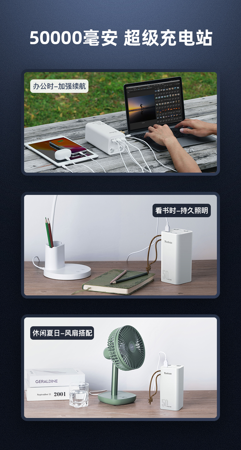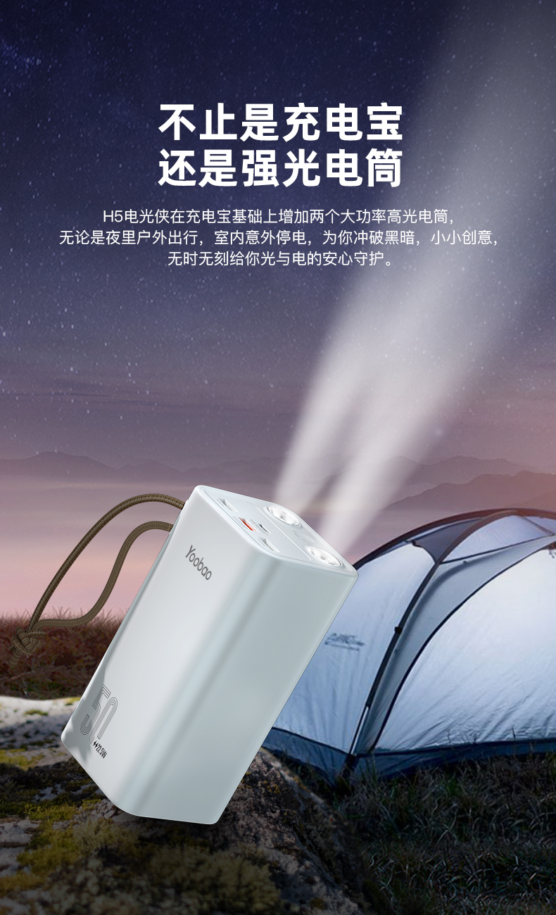 天猫羽博深圳专卖店209元,可领40元优惠券,实付169元到手,应急停电必备。羽博50000毫安超级移动充电站,支持快充,超大容量,能为苹果、华为、OPPO vivo、 小米等不同品牌手机、平板电脑供电,满足住校族、达人直播、野营徒步、户外自驾、摄影外拍等使用者长时间户外 龙出差工作的充电需求。双LED强光手电,为夜间旅行、洞穴探索带来持久光明。