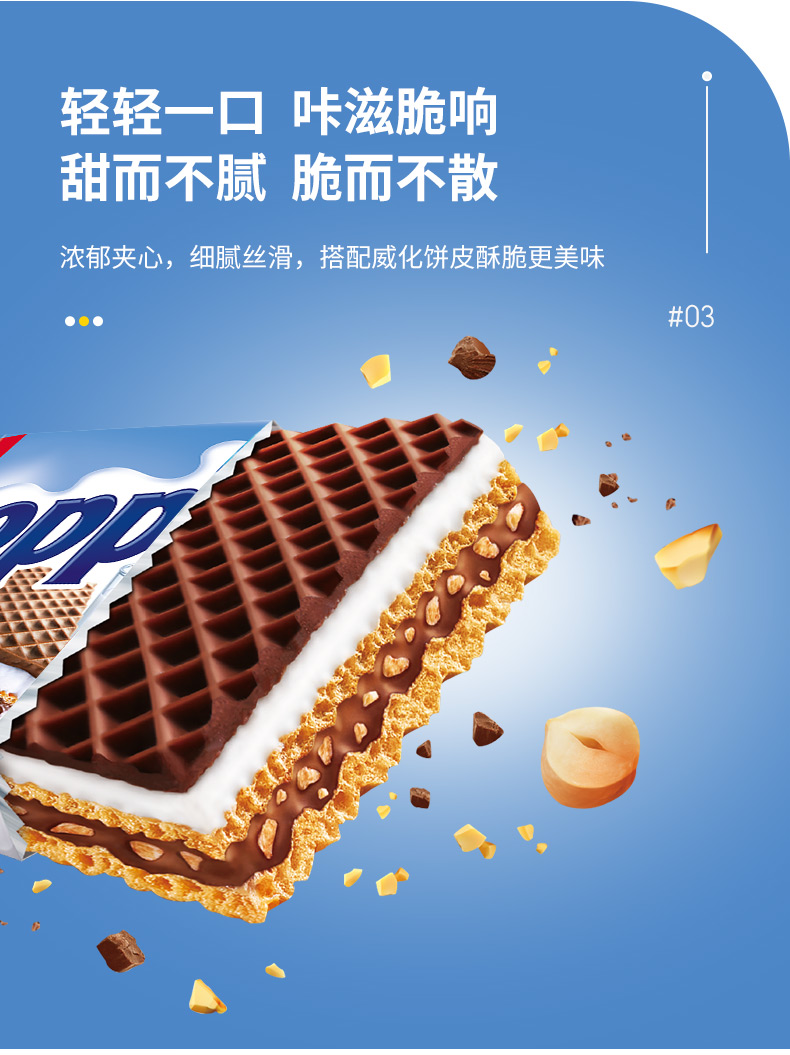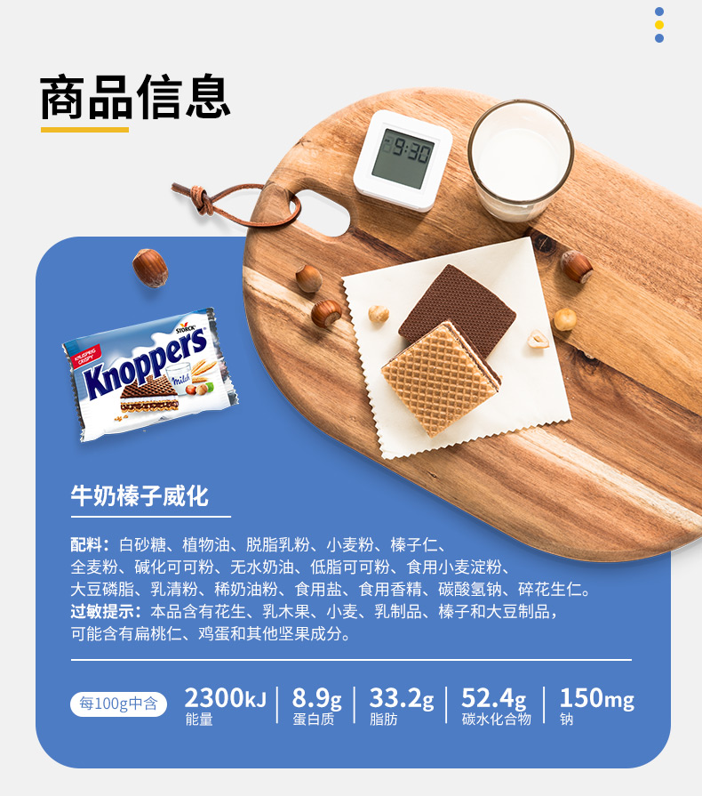 天猫Storck食品旗舰店39.9元,可领10元优惠券,实付29.9元到手,德国老牌公司August Storck KG于2015年推出Knoppers威化饼干,迅速风靡欧洲及新西兰等地,口感可媲美马卡龙,五层威化,这款是榛子椰子口味,费列罗巧克力+鲜牛奶+椰子+威化+榛仁巧克力酱+威化,营养美味健康 ---低糖、低脂肪、低卡路里,不含防腐剂。