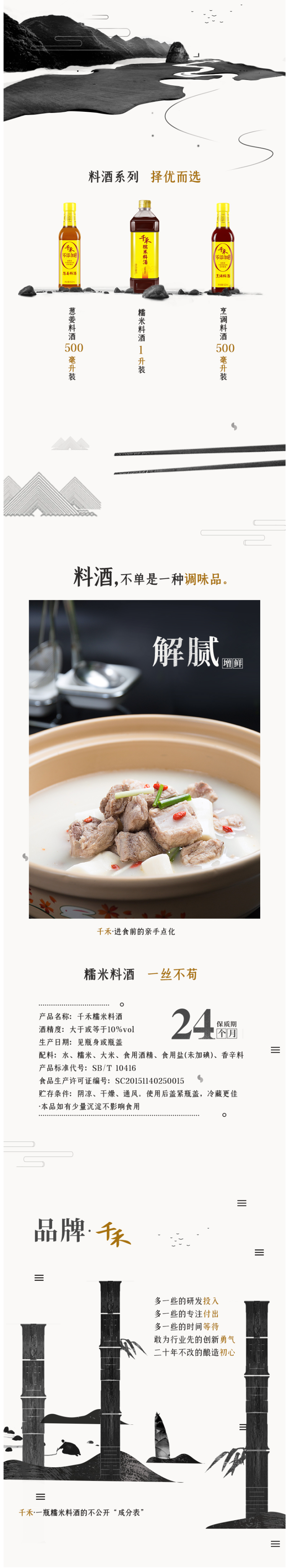 千禾是国内大牌,超市随处可见,所在的千禾味业食品股份有限公司已上市(603027)。这款千禾 糯米料酒,使用糯米酿酒,达到10°的平衡状态,再加入丁香、花椒、茴香等辛香料,具有去腥、解腻、增鲜提味的功效。