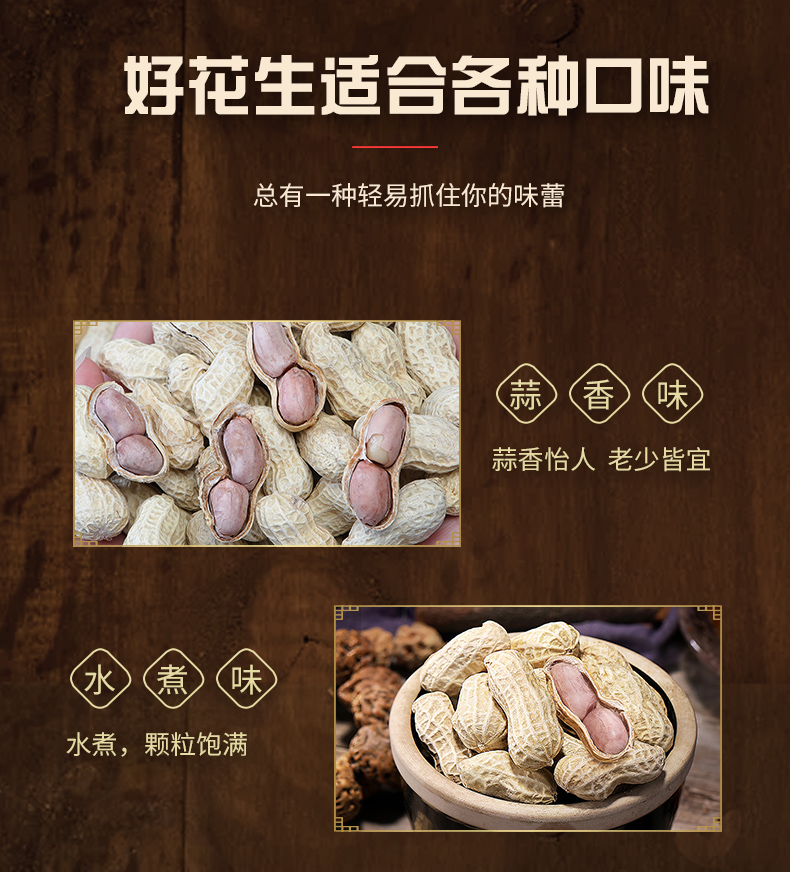 福建特产龙岩花生,颗粒饱满,采用湿烤等多种方式,让花生又香又有嚼劲,又不上火,五香味、蒜香味可选,入口咸香松脆,让人吃的不肯罢手。领券链接点此