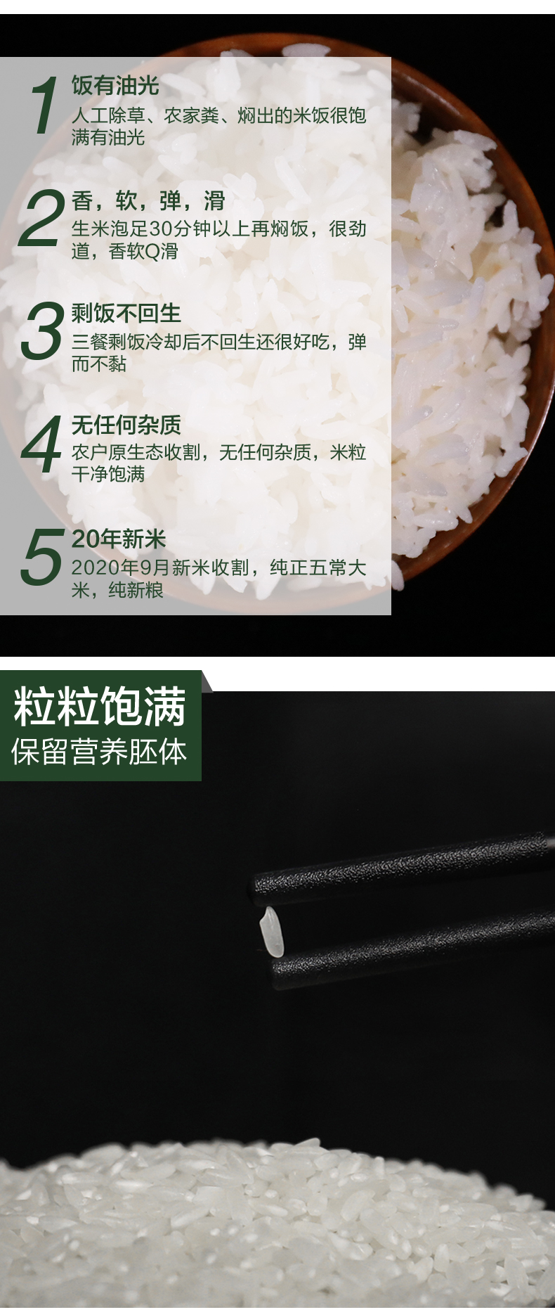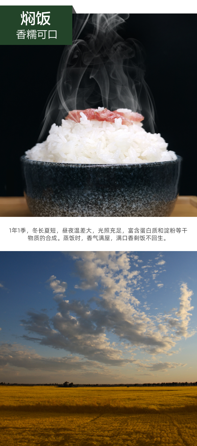 大米色泽光亮,醇厚绵长,饭香四溢。做好的大米饭口感极佳,食味清淡略甜,绵软略粘,芳香爽口。饭粒表面油光艳丽,剩饭不回生,是追求生活品质的人们米饭的首选。领券链接点此