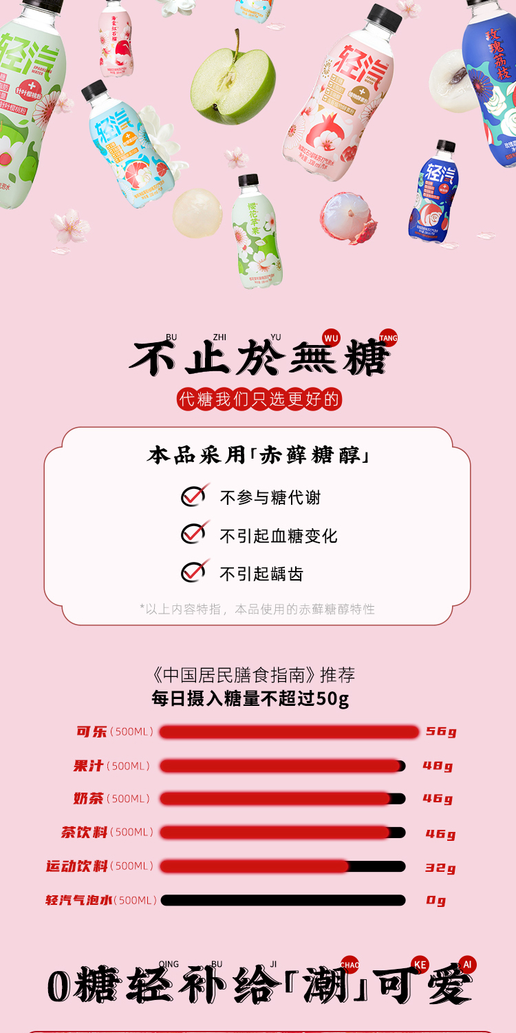 0糖0脂0卡,采用天然代糖「赤藓糖醇」不引起血糖变化,不引起龋齿,鲜明强烈的气泡,爽快感混合清纯的水果味道,曼妙爽口,散发着宜人橘气,冰镇一下,口感更畅爽~领券链接点此