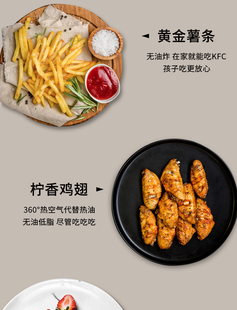 空气炸锅其原理和烤箱类似,通过高速热空气循环,利用食物自身的油脂炸熟食材,相对比传统的油炸更健康,口味也和烧烤的差不多,味道不错。相比烤箱的大体积,空气炸锅更省空间,适合三口之家日常使用,比较实用。