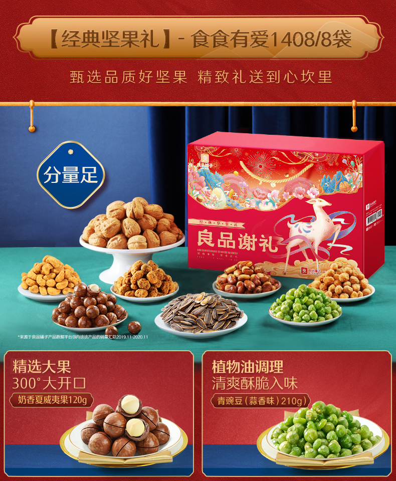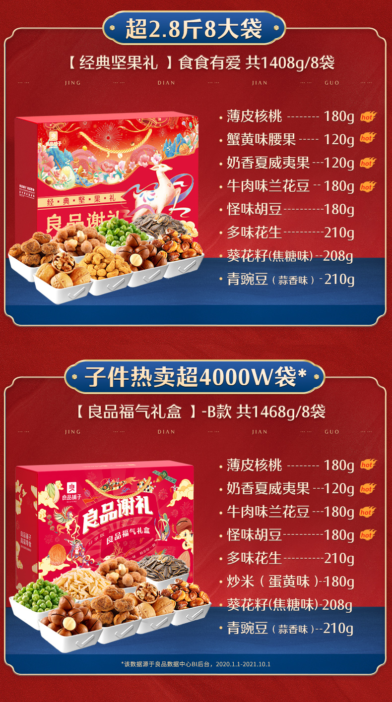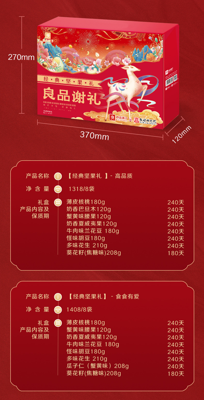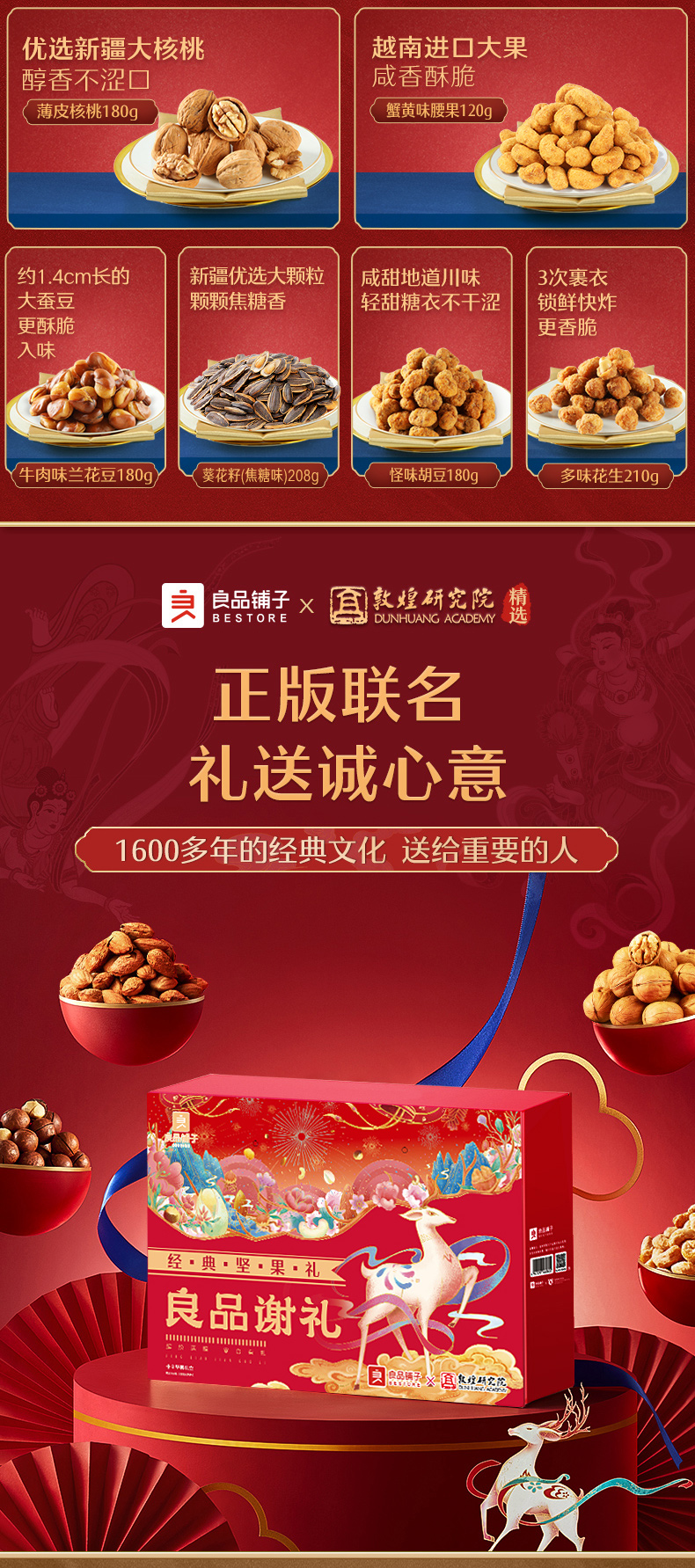 天猫良品铺子旗舰店98元,下单立减39元,可领10元优惠券,实付49元到手,这款良品铺子X敦煌研究院联合定制礼盒 共有4款组合套餐可选(详细可参考下图所示),包装高端精致,过节送礼佳选。