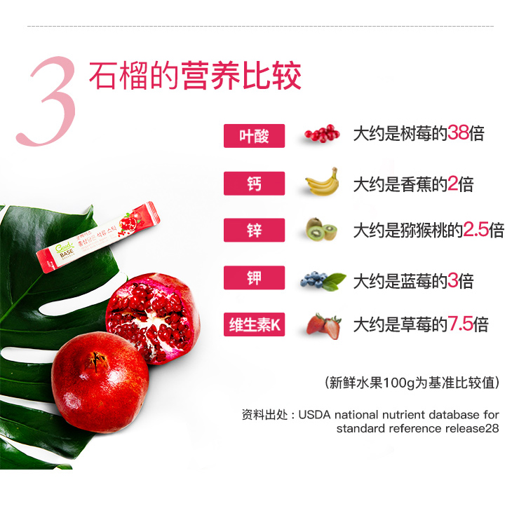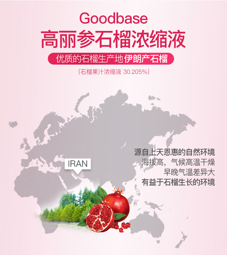 红石榴:采用土耳其原产红石榴浓缩成汁,除了含有丰富的维生素B1、B2、VC和和矿物质元素外,还含有石榴多酚、安石榴苷、原花青素、车矢菊素、花色苷等多种有助于皮肤健康的,抗氧化、抗衰老成分。