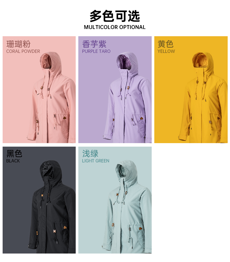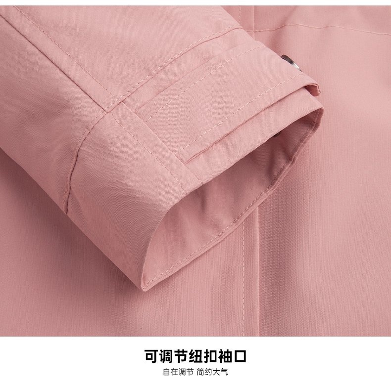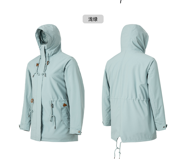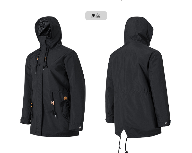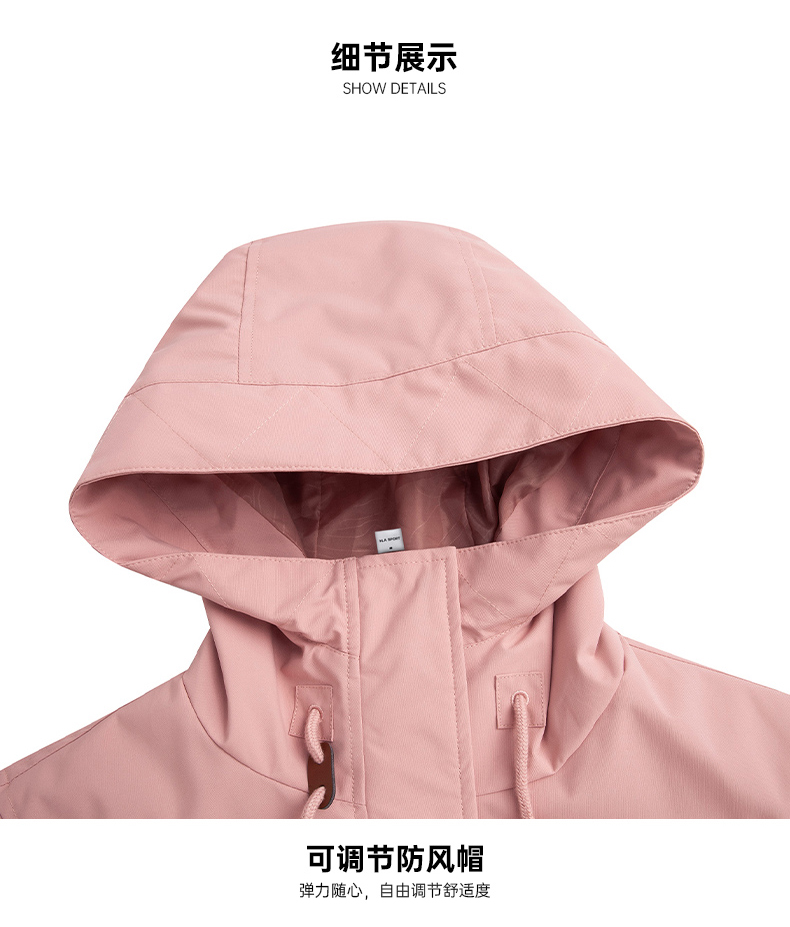 在款式方面,外层冲锋衣是标准版型,不过有收腰设计。头盔式连领防风帽,帽口两侧有调节绳扣,风雨雪天气下收紧帽口即可,防护严实,还不影响转头时的视线。