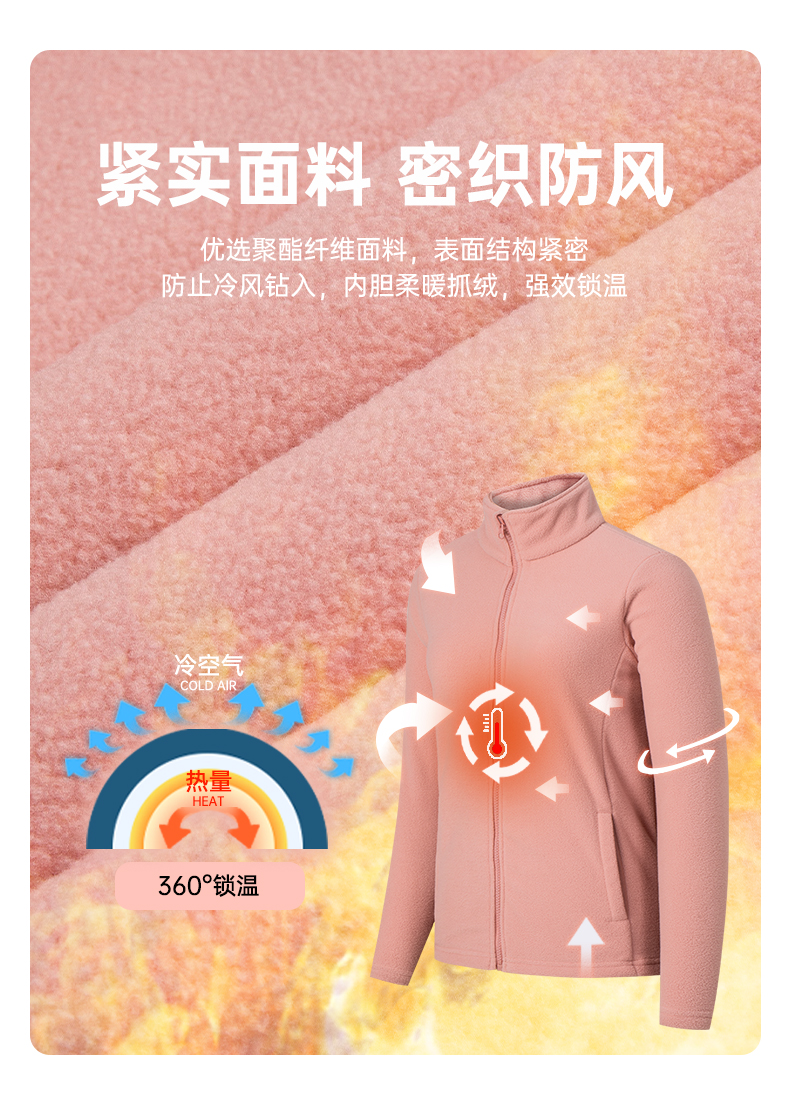 里层是开衫抓绒衣,抓绒也叫“摇粒绒”,是穿衣时的中间层,保暖效果比羊毛的毛衣好,重量更轻便,也易于打理直接扔进洗衣机里清洗就行。