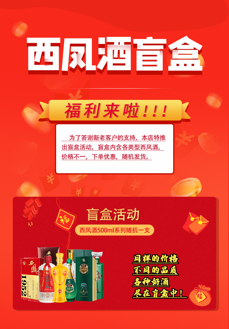 天猫旺聚千酒类专营店38.8元,可领5元优惠券,实付33.8元到手,含西凤及其旗下品牌的浓香型白酒,盲盒体验,随机发货,部分可能有染标、损标的情况,适合自饮。