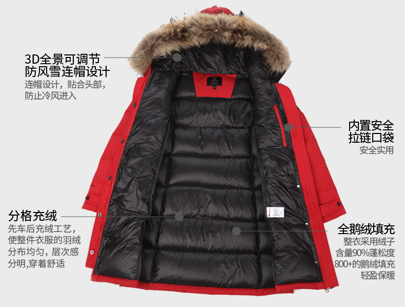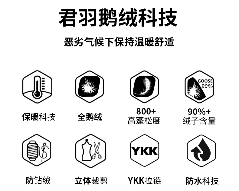 「鹅绒」800蓬鹅绒成本约是普通鸭绒的10倍,没有鸭毛的腥味,保暖效果更好:「177克 800蓬鹅绒」≈「229克 389蓬普通鹅绒」≈「327克普通鸭绒」。