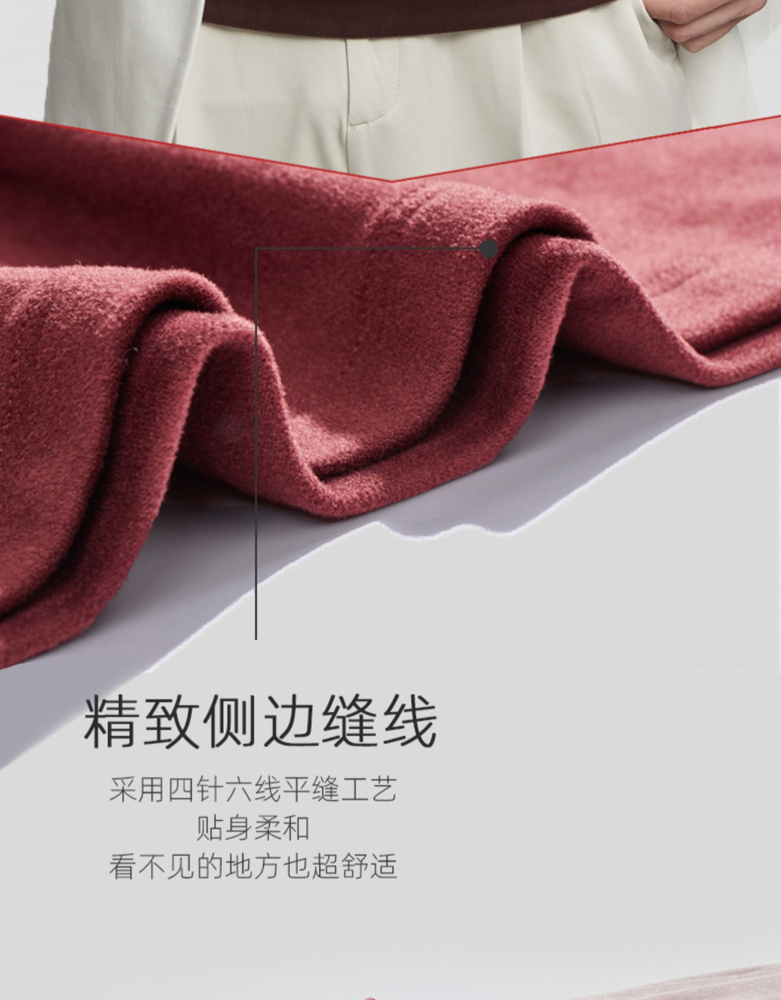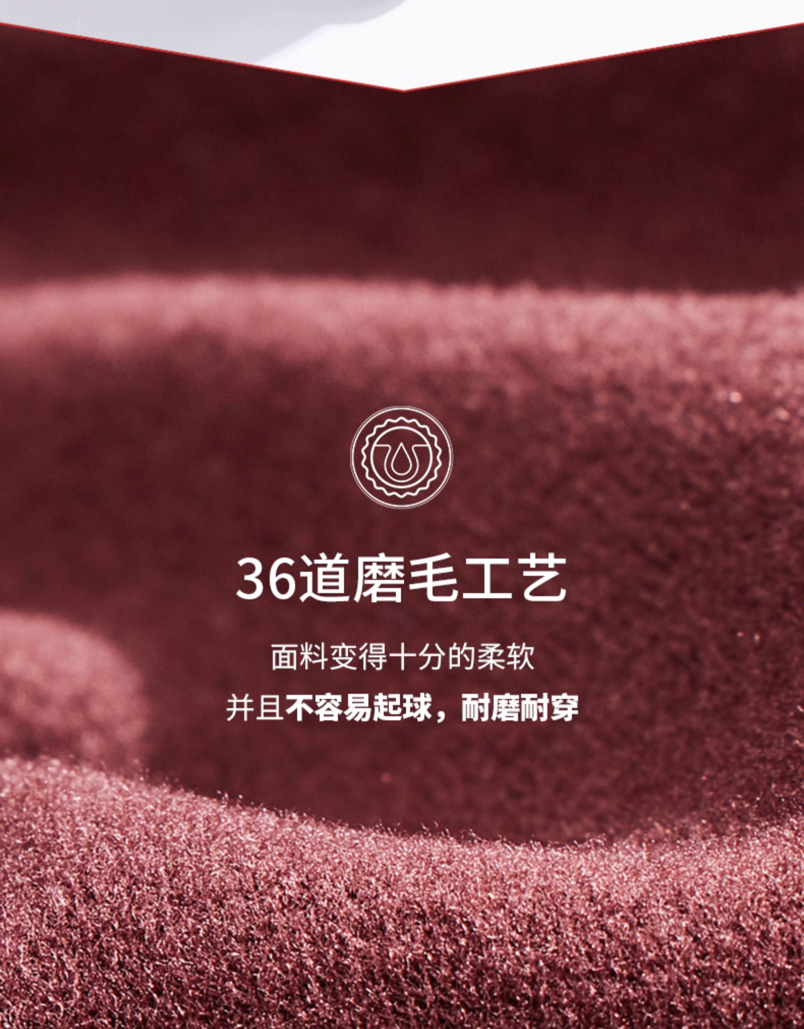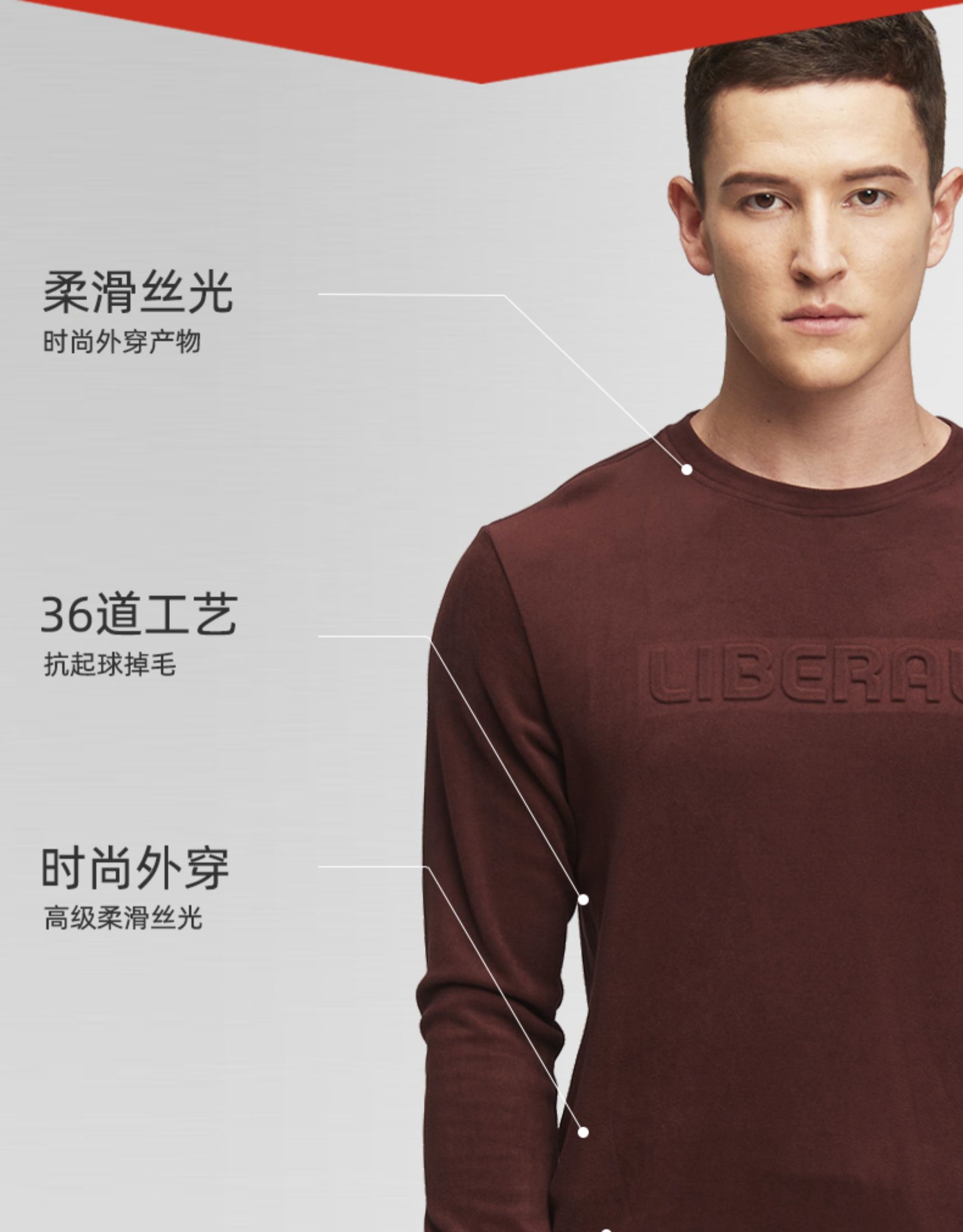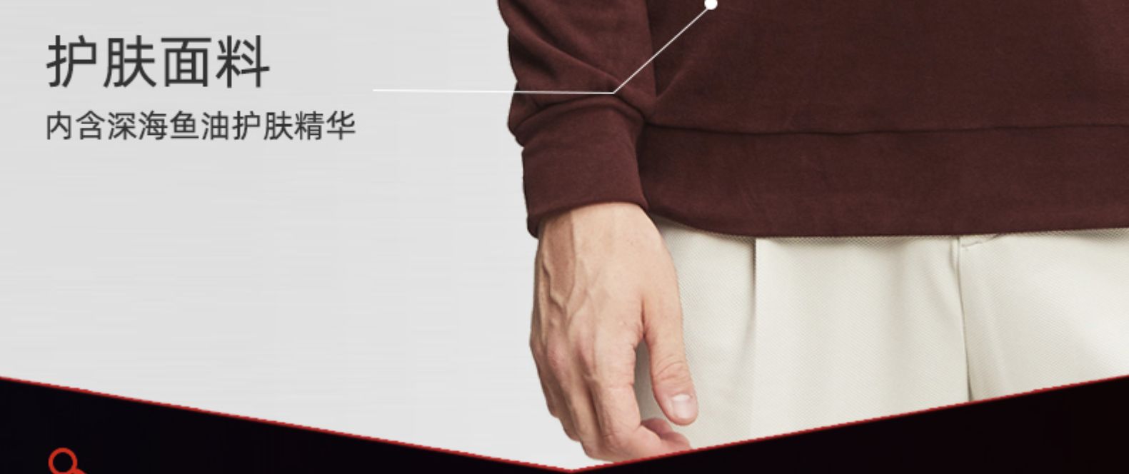面料是65%粘纤+7%氨纶+28%腈纶的材质,比较均衡的一款面料,腈纶帮助保暖发热,氨纶提供弹性,上身不束缚;工艺方面,采用四针六线的平缝工艺,贴身柔和,牢固不磨人,表面经过磨毛工艺处理,使面料柔软,不易起球,耐磨耐穿。