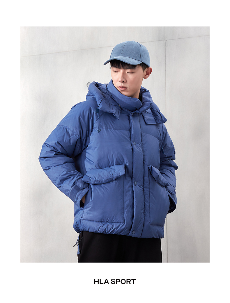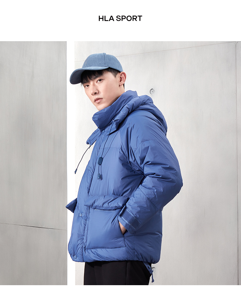 这款海澜之家男连帽短款羽绒服,是2021的秋冬新款,外层使用的是100%锦纶面料,耐磨抗皱易打理,内里填充的是90%的鸭绒,充绒量在130~160g左右,属于中等厚度,能抗-5至-10℃。