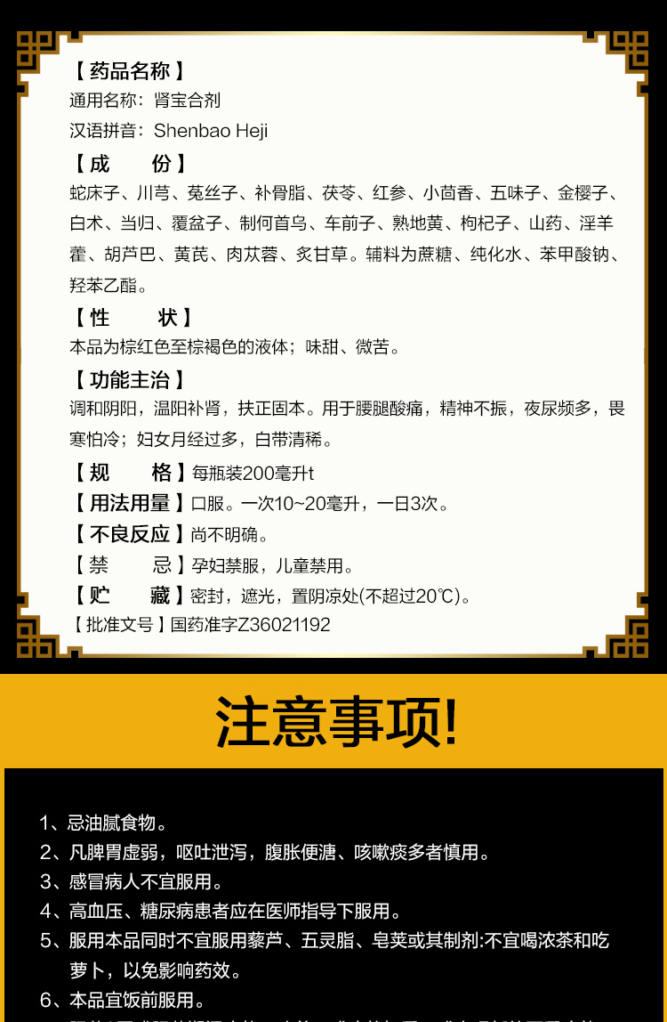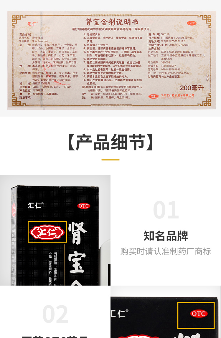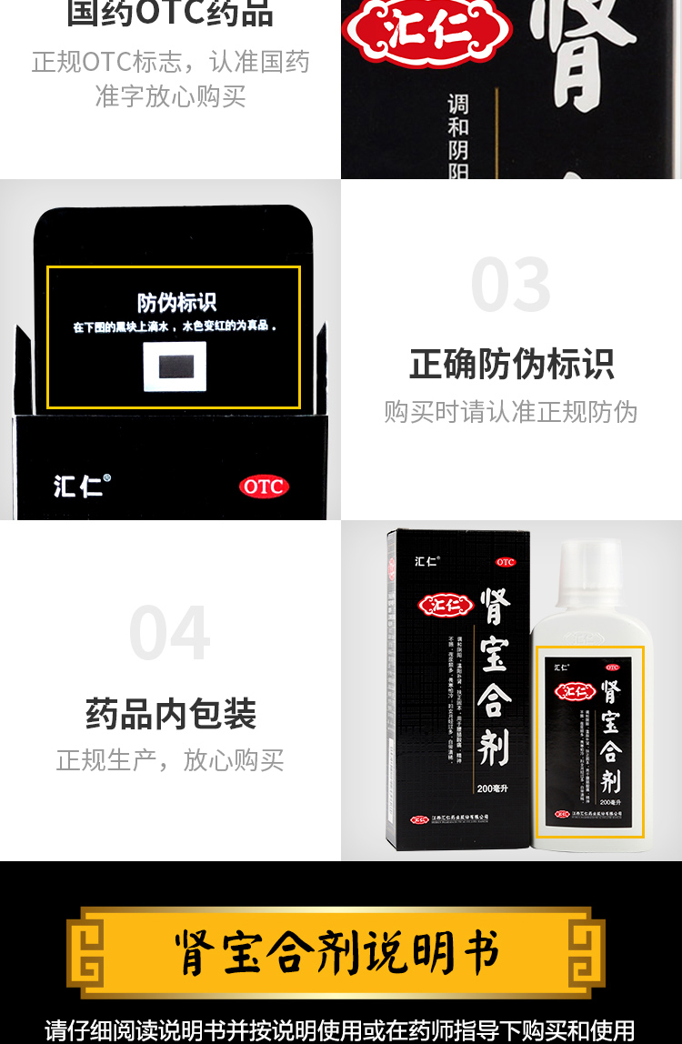 阿里药房直营,国药OTC准字认证,选汇仁合剂 液体剂,相比片剂更易吸收,精选22味中药,采用32道工序,历经42天慢熬制成,集温阳补肾、调和阴阳、扶正固本、三效合一,男女保健都能用,规格为200ml/瓶。每日3次 每次10-20ml,可用3-6天,孕妇、儿童忌用。