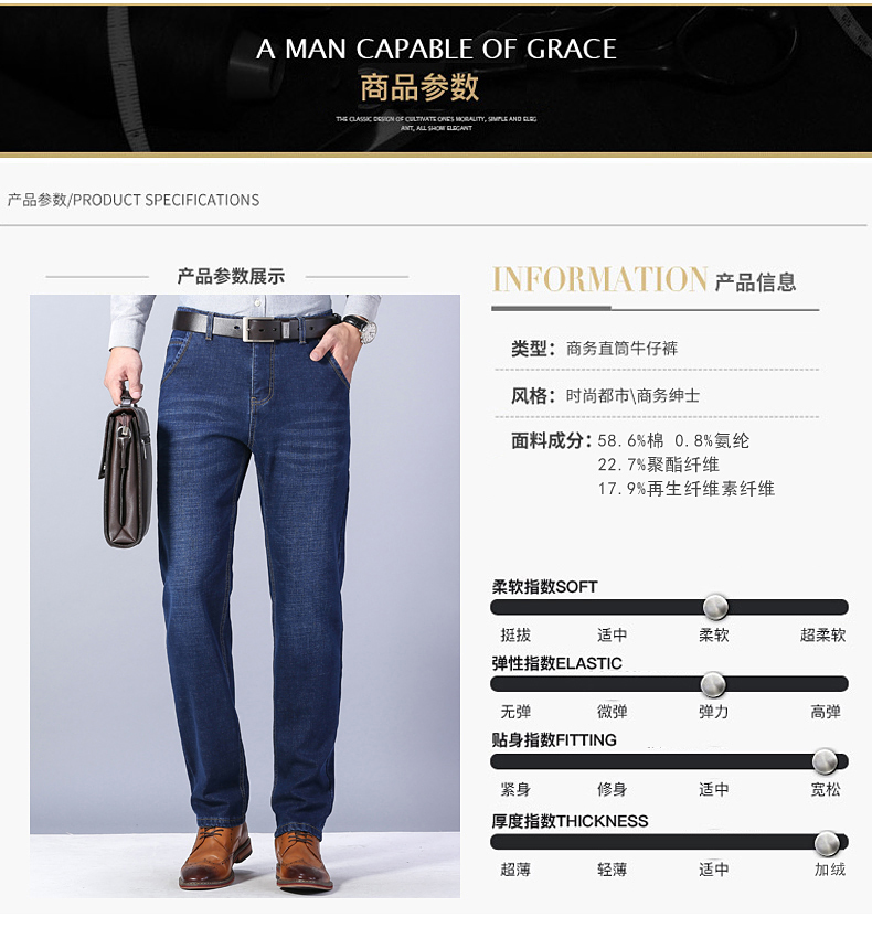 休闲商务牛仔裤,高端定制面料,轻薄柔软,亲肤透气,弹力舒适,耐磨耐穿不变形,不起球、不掉色,时尚休闲!天猫品质、放心购买。领券链接点此