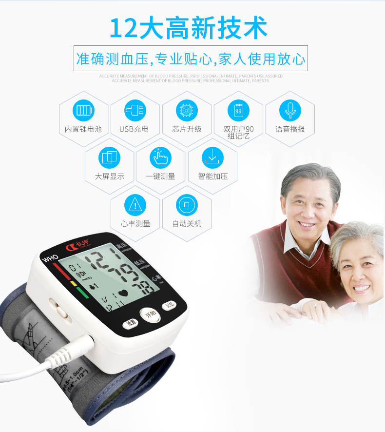 同时采用双人90组记忆值,可以自动储存测量结果,减少数据遗漏,牢记每天的血压值,方便对比。并且全程语音播报,即使不看显示屏或者不认识字也能知道测量结果。
