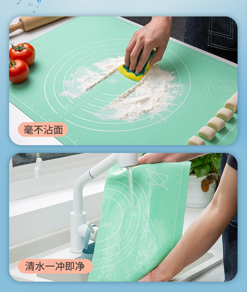 天猫联购家居专营店29.9元,可领1元优惠券,实付28.9元到手,50*40cm款此价,这种硅胶揉面垫非常好用,相比于传统的菜板,主要有两个优势,第一是不容易沾,第二是方便清洗。硅胶表面是致密的材质,相比原木的孔隙,更不容易沾;硅胶也柔软,用后可以直接放在盆子里洗净。
