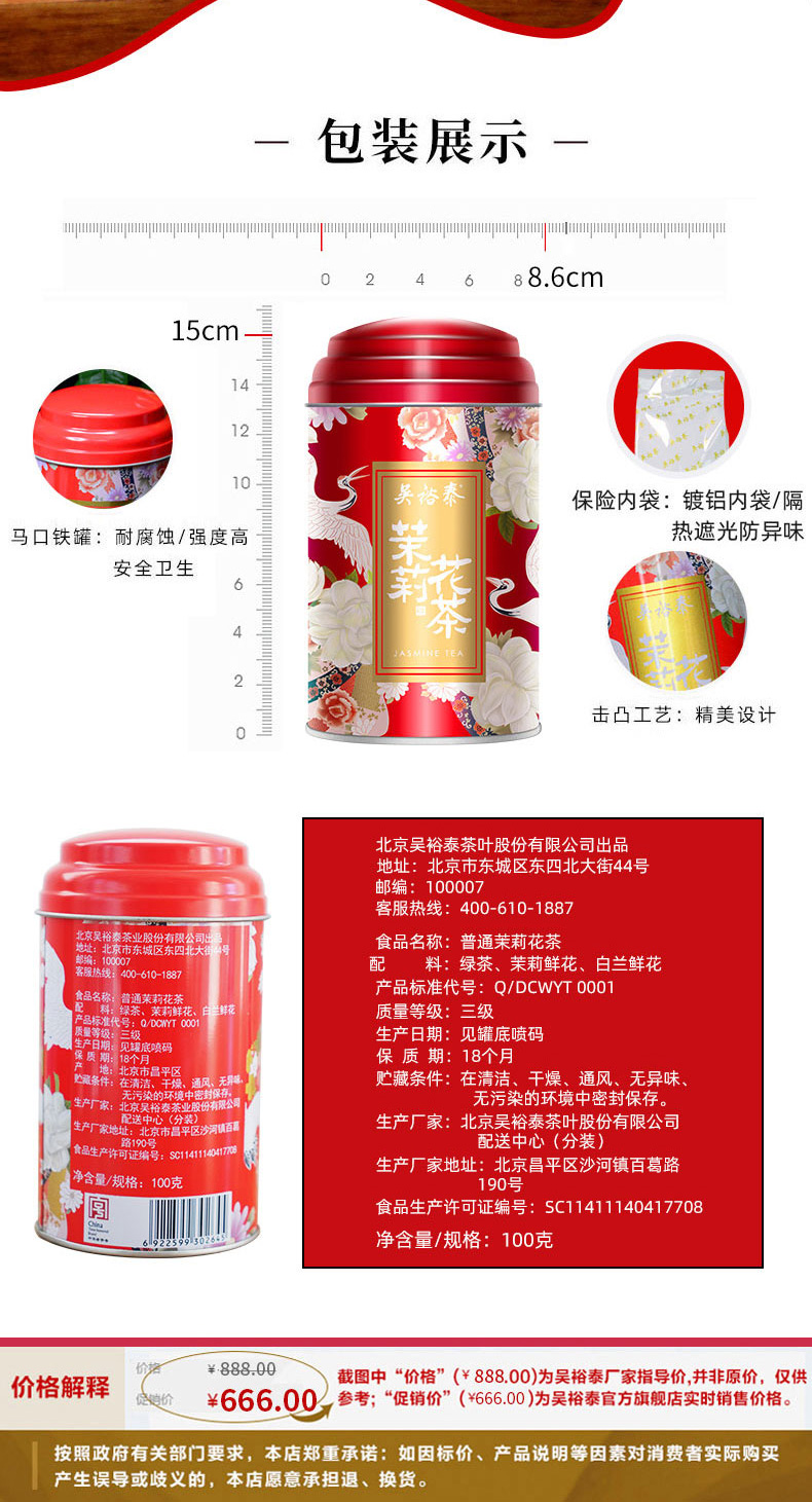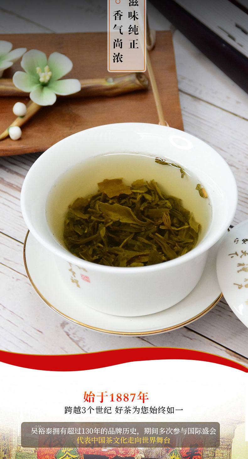 天猫吴裕泰官方旗舰店69.9元,可领30元优惠券,实付39.9元到手,中华老字号吴裕泰,主营茶叶、茶制品、茶衍生品,以自拼茉莉花茶为主要特色,非遗技艺、六次窨制,其特点是:"香气鲜灵持久,滋味醇厚回甘,汤色清澈明亮,耐泡",被消费者亲切地称为"裕泰香"。