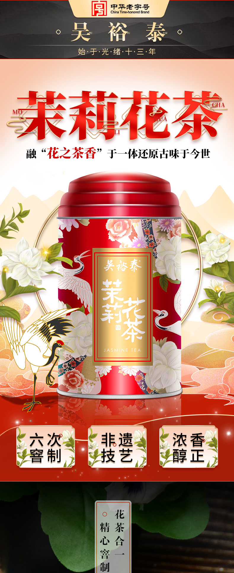 始创于1887年,由吴裕泰茶栈、吴裕泰茶庄演变、发展而来,至今已有120余年的历史。分店遍布北京的大街小巷,是国家商务部首批认定的“中华老字号”。2019年11月,《国家级非物质文化遗产代表性项目保护单位名单》公布,北京吴裕泰茶业股份有限公司获得“花茶制作技艺(吴裕泰茉莉花茶制作技艺)项目”保护单位资格。