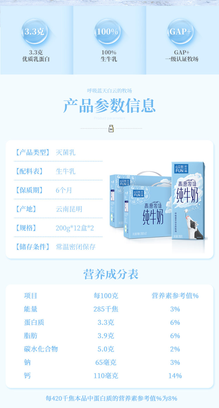 出自云南的雪兰高原生态牧场,雪兰牧场是超欧盟十倍标准,奶源纯净,自然醇浓,食品安全有保证,新鲜、优质、营养、安全、卫生。零添加、自然浓醇,不添加任何食品添加剂,还原牛奶自然的样子。领券链接点此