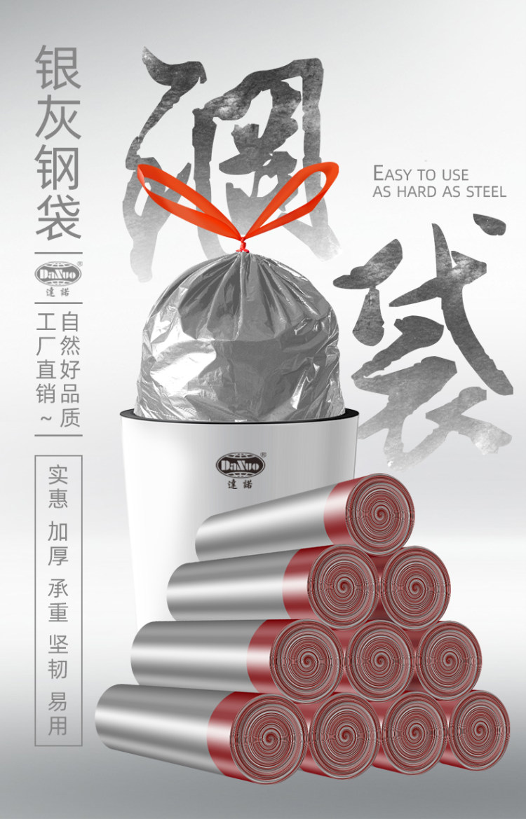 自动收口 手提式设计 方便快捷 加厚不破。高品质垃圾袋,银灰钢袋,适合各种常用8至15L垃圾桶,承重可达10公斤,满足日常使用,提绳拉伸不断裂!家家必备,是你不错的选择!领券链接点此