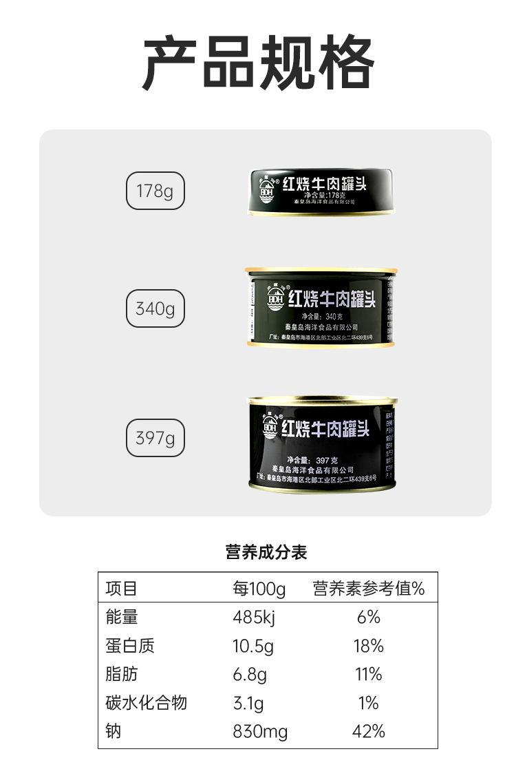 这款牛肉罐头精选优质牛肉,新鲜宰杀,在原料上锁住肉的新鲜度。采用无菌罐装的方式封装,首先将罐盖与罐身通过封口机进行抽真空、密封,外界的空气就无法进入,然后将封好的罐头放入杀菌锅中,高温高压杀灭罐头内的绝大多数细菌,使罐头符合商业无菌,所以,即便是在常温的条件下也可以长时间的保存。