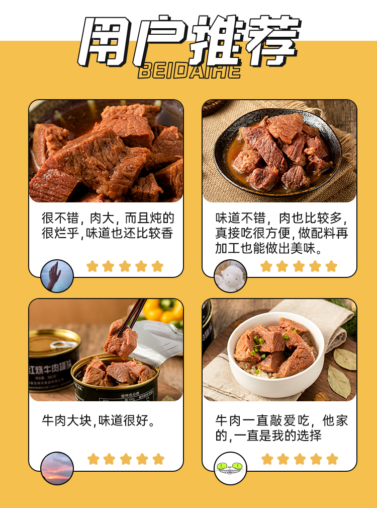 天猫北戴河食品旗舰店79.9元,可领5元优惠券,实付74.9元到手,是正价159.8元的4.7折;原厂直销 大块牛肉 易保存。规格是178g*4罐。第一款此价。