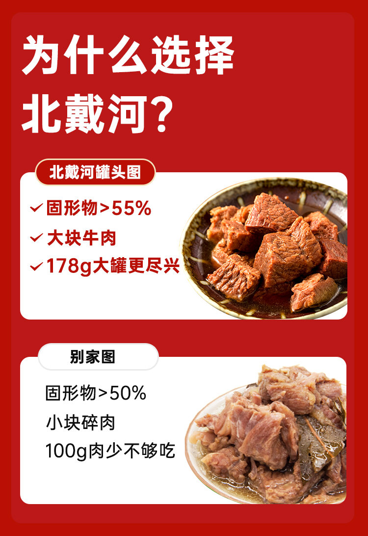 北戴河是原中国人民解放军第四〇〇三工厂,60年的军品制作经验,产品量大实在,货真价实,之前最火的红烧肉罐头,源头就是北戴河,可以直接拌米饭,也可以整点土豆一起炖炖。