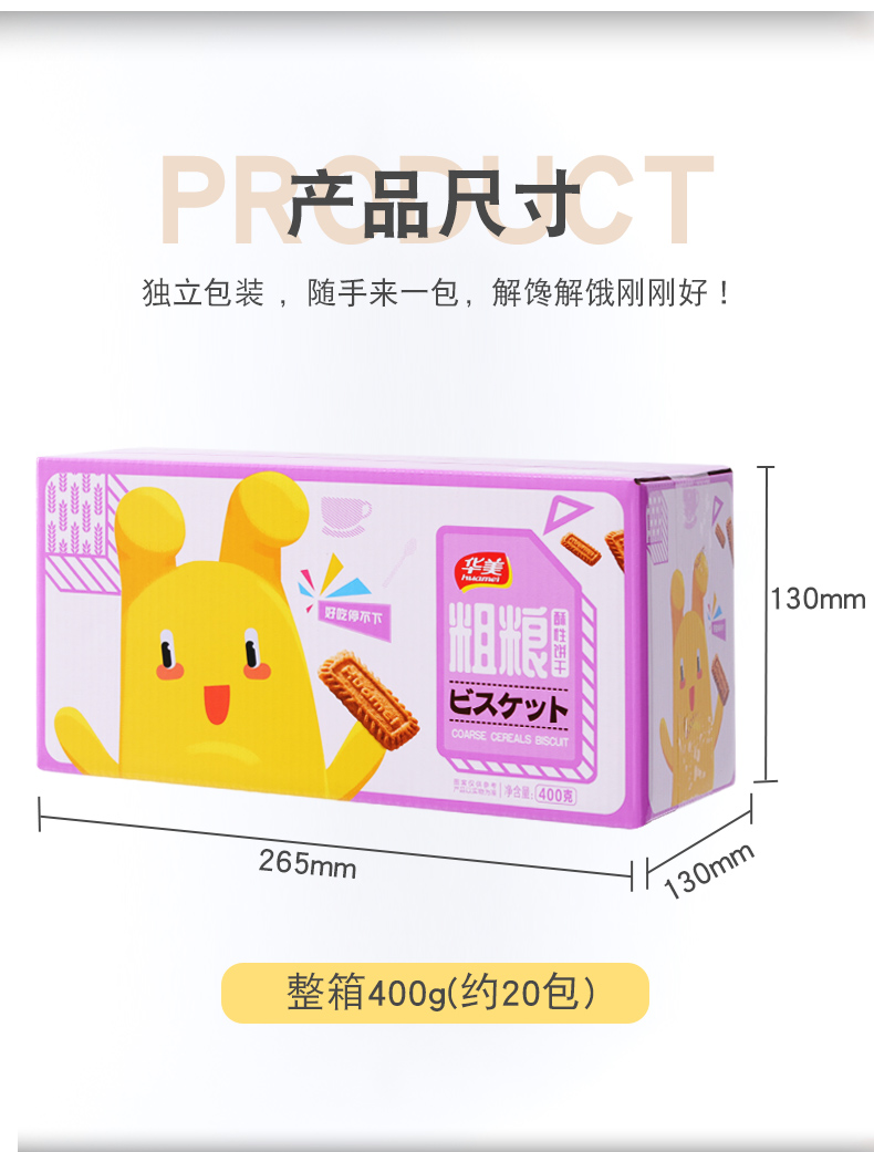 天猫超市15元,可领5元优惠券,实付10元到手;单件包邮天猫官方自营正品保证。华美粗粮饼干400g,甄选原料,粗纤维饼,口感松酥不腻,享受满口酥脆,下午茶好伴。