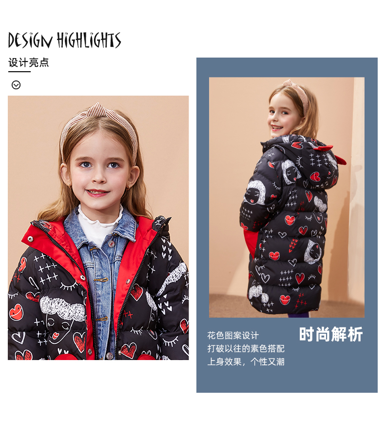 这款鸭鸭 2021新款女童洋气长款过膝90%羽绒服,黑科技高密度面料,手感舒适,柔软顺滑,成品细腻;甄选胸腹间鸭绒,90%充绒量,600+蓬松度,600+洁净度,优雅纤长,蓬松锁暖;花色图案设计,打破以往的素色搭配,上身效果个性又潮。
