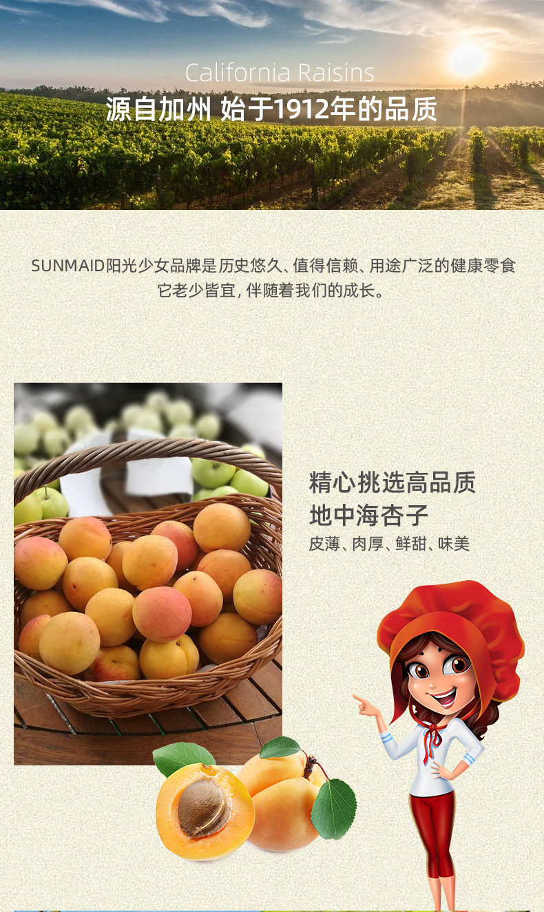 天猫SUNMAID海外旗舰店45元,下单立减4.5元,可领1元优惠券,实付39.5元到手,拍2件减18元,拍2件71元到手,更加划算。这款SUNMAID 阳光少女 土耳其去核杏,精心挑选高品质地中海杏子,皮薄、肉厚、鲜甜、味美。不添加糖,零脂,零胆固醇。果肉肥厚,Q软细韧,保留恰当的含水量,果肉更鲜更嫩。杏香浓郁,酸甜适中,多汁肉厚,酸中带甜,地道杏香口感佳。