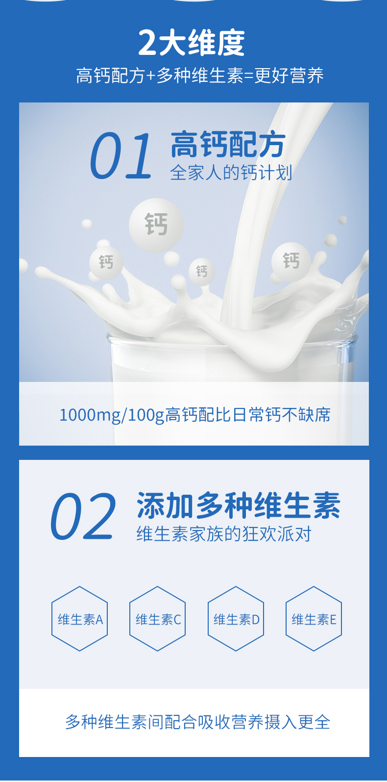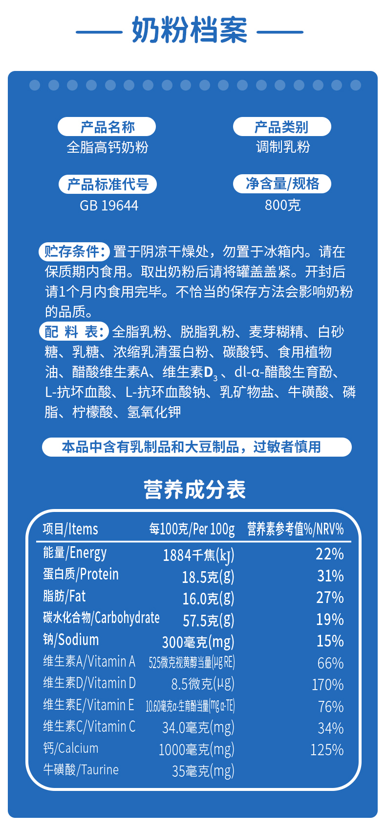 蒙牛官方旗舰店出品,下单送杯子,9.6倍浓缩高钙,每100g含钙1000mg,还添加了牛磺酸、益生菌和维生素A、C、D、E等多种维生素,全家全年龄都可以饮用。马口铁罐装,扣盖设计密封性好,可持久保鲜。