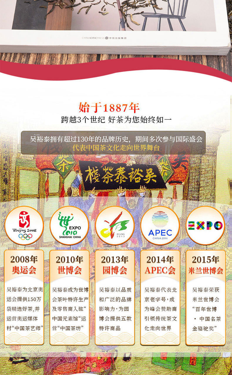 其中吴裕泰牌的茉莉牡丹绣球、茉莉雪针、莲峰翠芽等8个品种曾连续三年获国际名茶评比会金奖,并获日本、韩国评茶会名茶金奖。