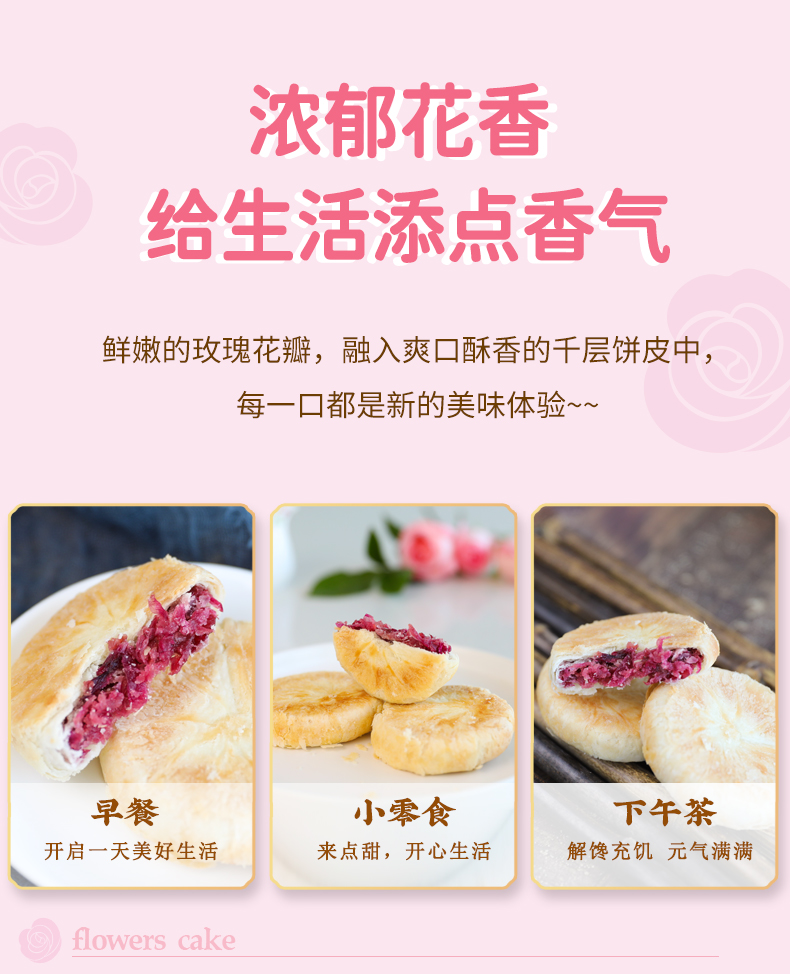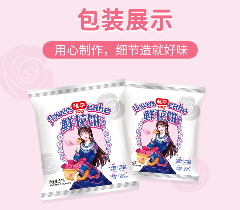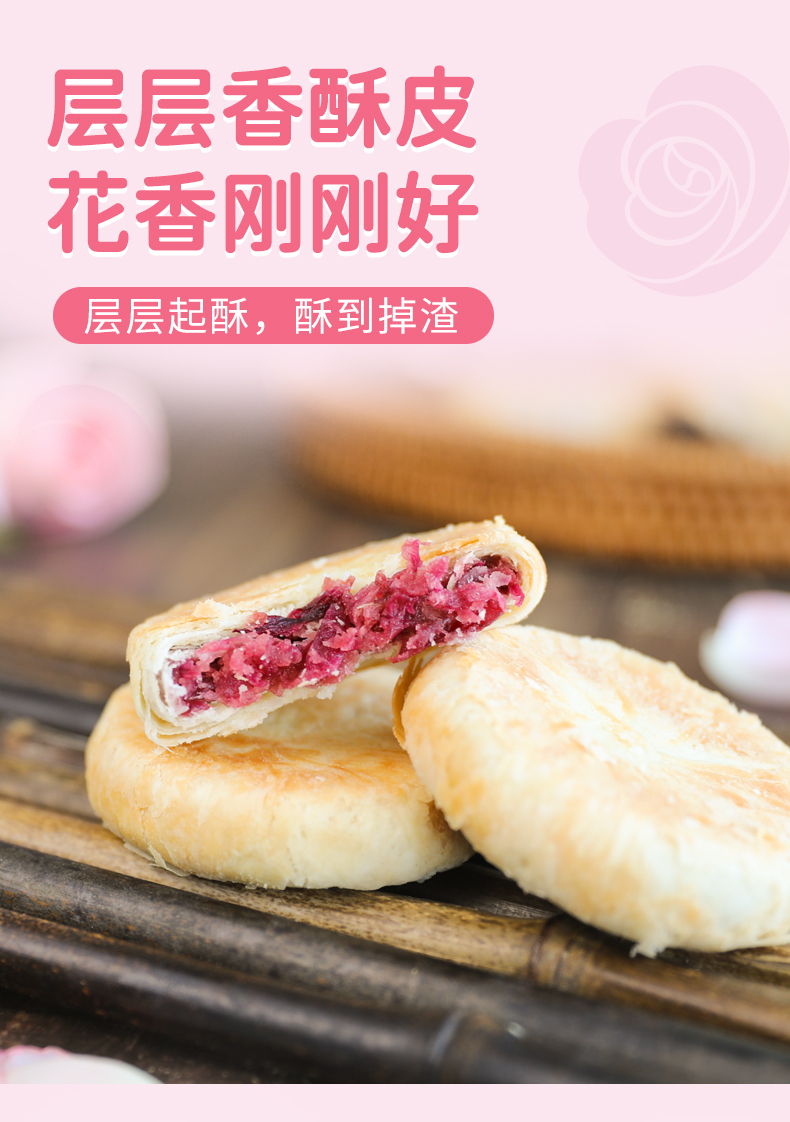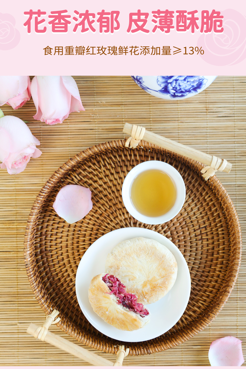 桃李大牌,手工玫瑰鲜花饼,云南基地直采,大于13小时的阳光玫瑰,3朵玫瑰1块饼,馅多料足,外皮层层起酥,清新香甜,花香扑面,好吃不腻!