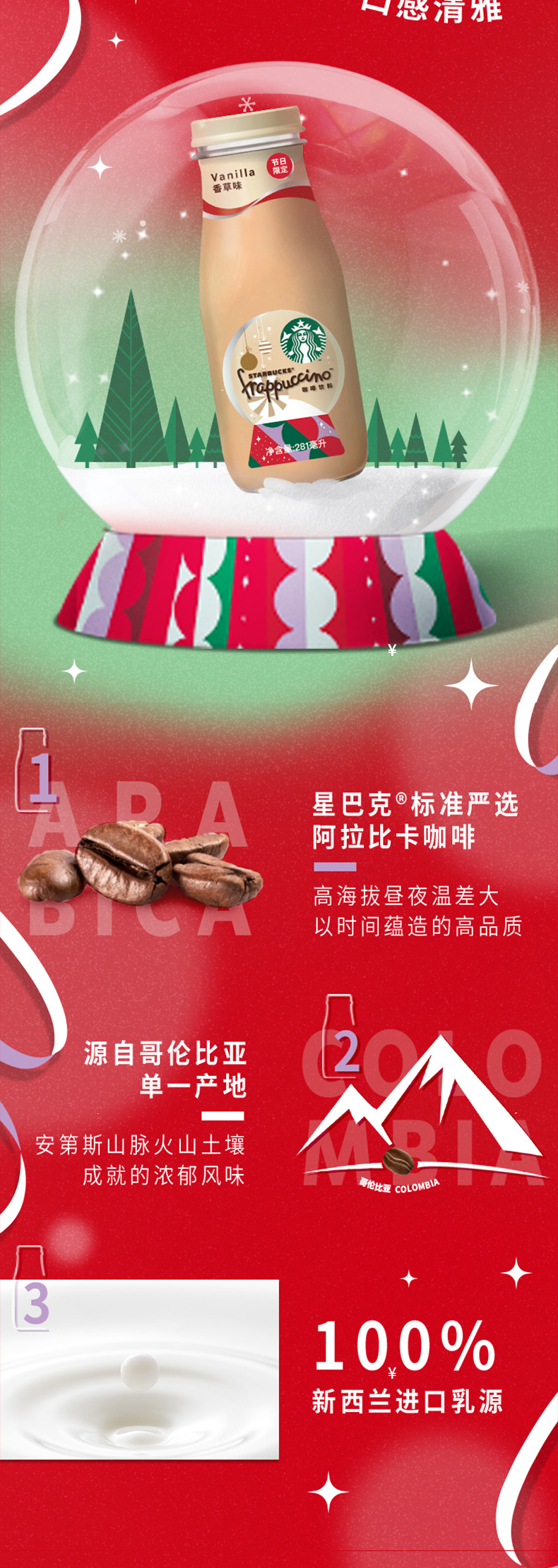 星冰乐是Starbucks(星巴克)的招牌饮料,由意大利浓缩咖啡、低脂牛奶、砂糖、可可粉、冰块混合而成。出门或者在家也能喝到纯正的星巴克咖啡了。冷藏以后口感更佳。