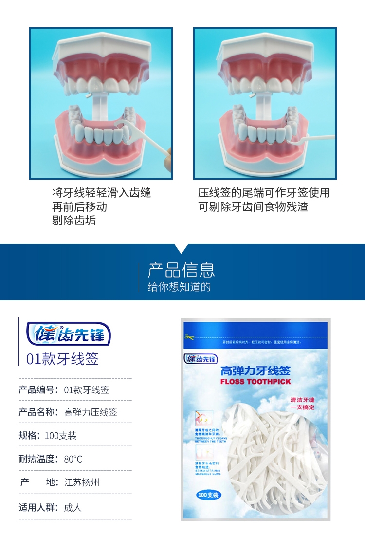 细护理牙线棒,有效清除牙缝残渣,有效防止牙缝表面污渍形成,尾段弹性弯柄,可用作牙签,有助安全地清除牙缝间残渣。领券链接点此