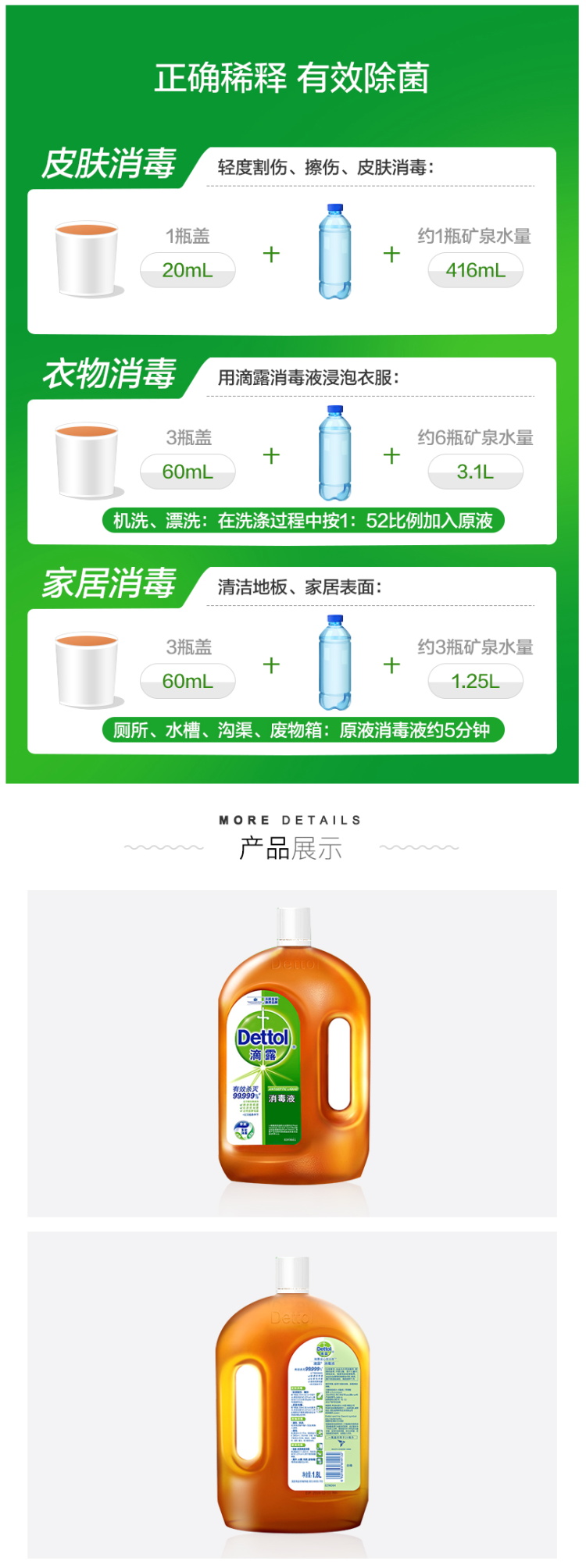 这款滴露 杀菌消毒液,主要有效成分是PCMX,可有效杀灭99.999%的大肠杆菌、金黄色葡萄球菌等有效细菌,含有清香松油,淡淡清香;可兑水用于伤口消毒,也可以用于地板消毒、衣物消毒、家居消毒等。